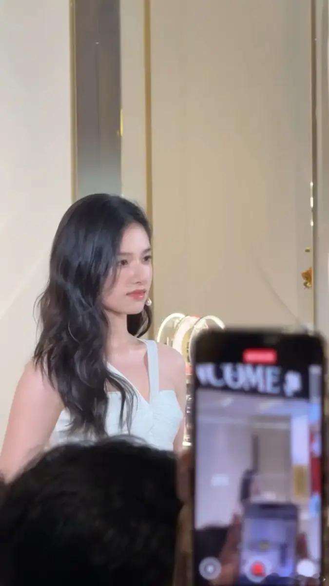 10月17日,一组张婧仪参加活动的路透图释出。图中,张婧仪妆容精致,微卷长发搭配珍珠耳饰,气质优雅。