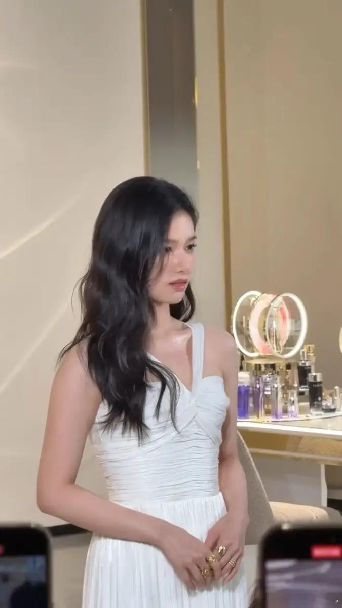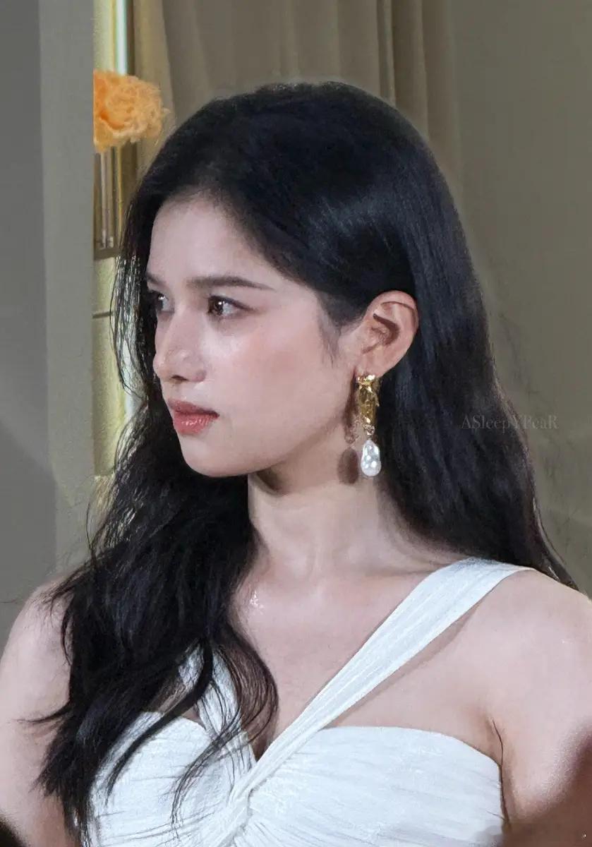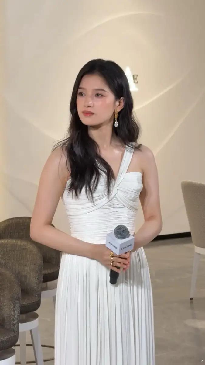 张婧仪戴珍珠耳环端庄大气 穿白色礼裙宛如公主