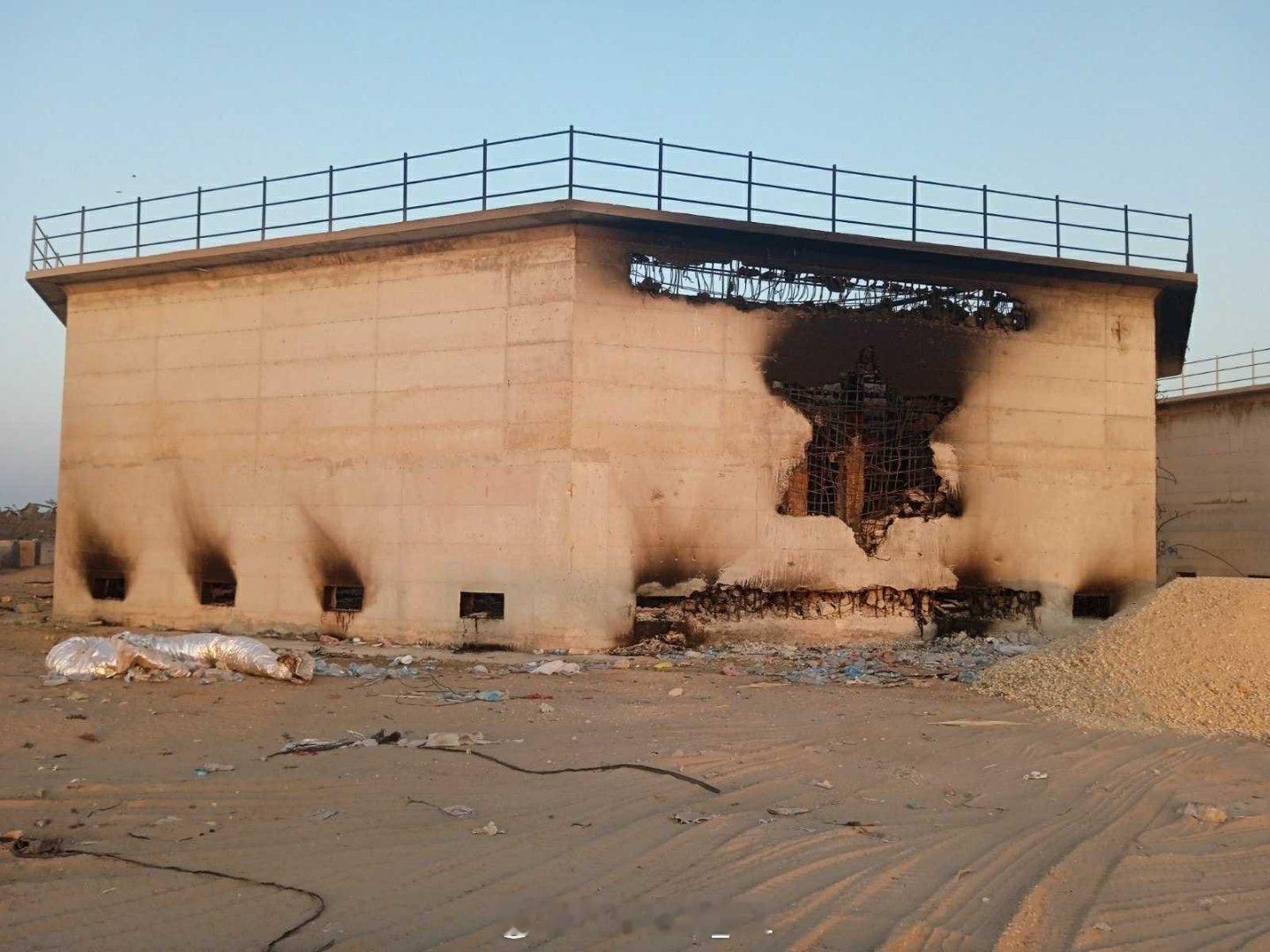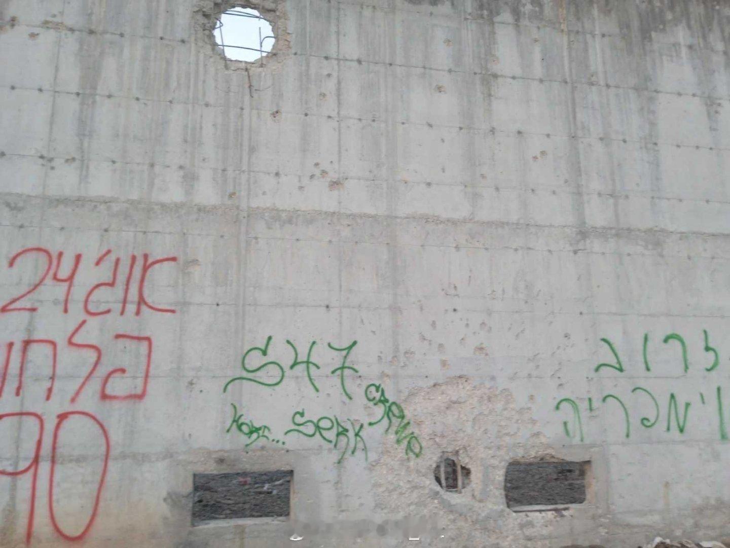 巴勒斯坦加沙地区水务部门工作组进入了以色列军队撤出的区域,发现原先的水务设施已经被以色列军队纵火烧毁。执行“三光”政策的以色列士兵在墙上留下了其部队番号——“第90营先锋部队”。