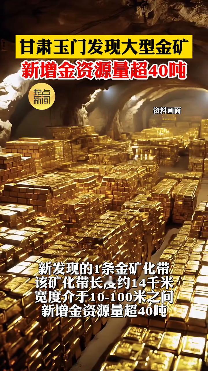 甘肃玉门发现大型金矿,新增金资源量超40吨。 据甘肃省自然资源厅10月14日消息,甘肃省玉门市前红泉一黑山北滩地区新发现一处大型金矿,规模相当于两个大型金矿的资源量。新发现的1条金矿化带,该矿化带长度约14千米,宽度介于10-100米之间。 据介绍甘肃省黄金资源储量位居全国第二,北山成矿带是省内重要的。另据央视新闻15日消息,纽约商品交易所黄金期货市场交投最活跃的2025年12月黄金期价一度超过每盎司4200美元,创历史新高。数据显示,国际金价今年以来的涨幅已超过50%。银金矿