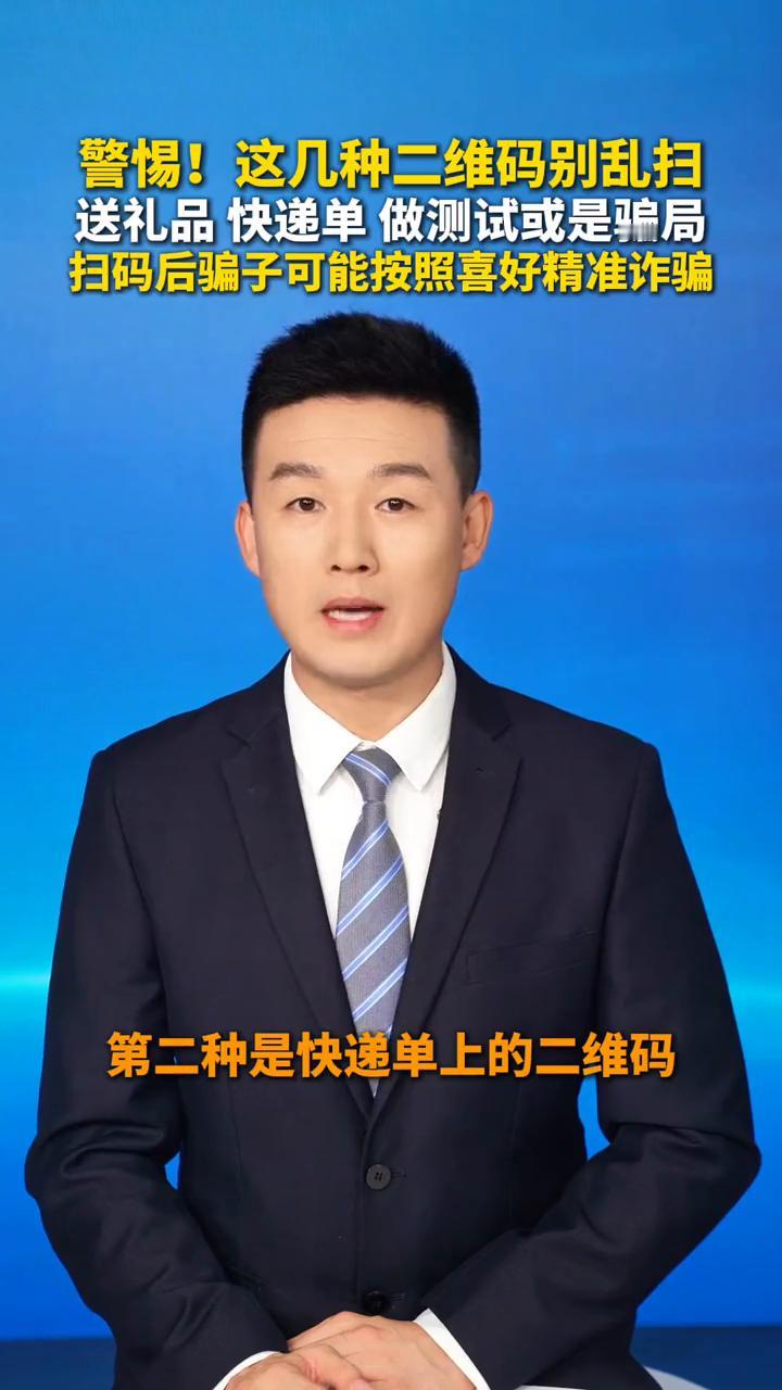 警惕!这几种二维码别乱扫,送礼品、快递单做测试或是骗局,扫码后骗子可能按照喜好精准诈骗。 奔腾融媒主播王元楷。 三种二维码不能扫,扫一次可能家底就没了。 ·第一种是免费领取礼品的二维码不能扫。扫描这些二维码,安装的APP中很可能植入了木马病毒,它会获取你手机内的重要信息,盗取您的钱财。 ·第二种是快递单上的二维码不能扫。快递单上的扫码返现、领红包、赠送礼品的字样看起来很诱人,一旦扫码就会一步步落入诈骗分子的圈套。 ·第三种是测试题的二维码不能扫。像测星座、测运势、测面相等等,这些测试需要输入手机号、姓名、身份证号等个人信息,一旦填写骗子就会收集你的信息,根据你的喜好进行精准诈骗。