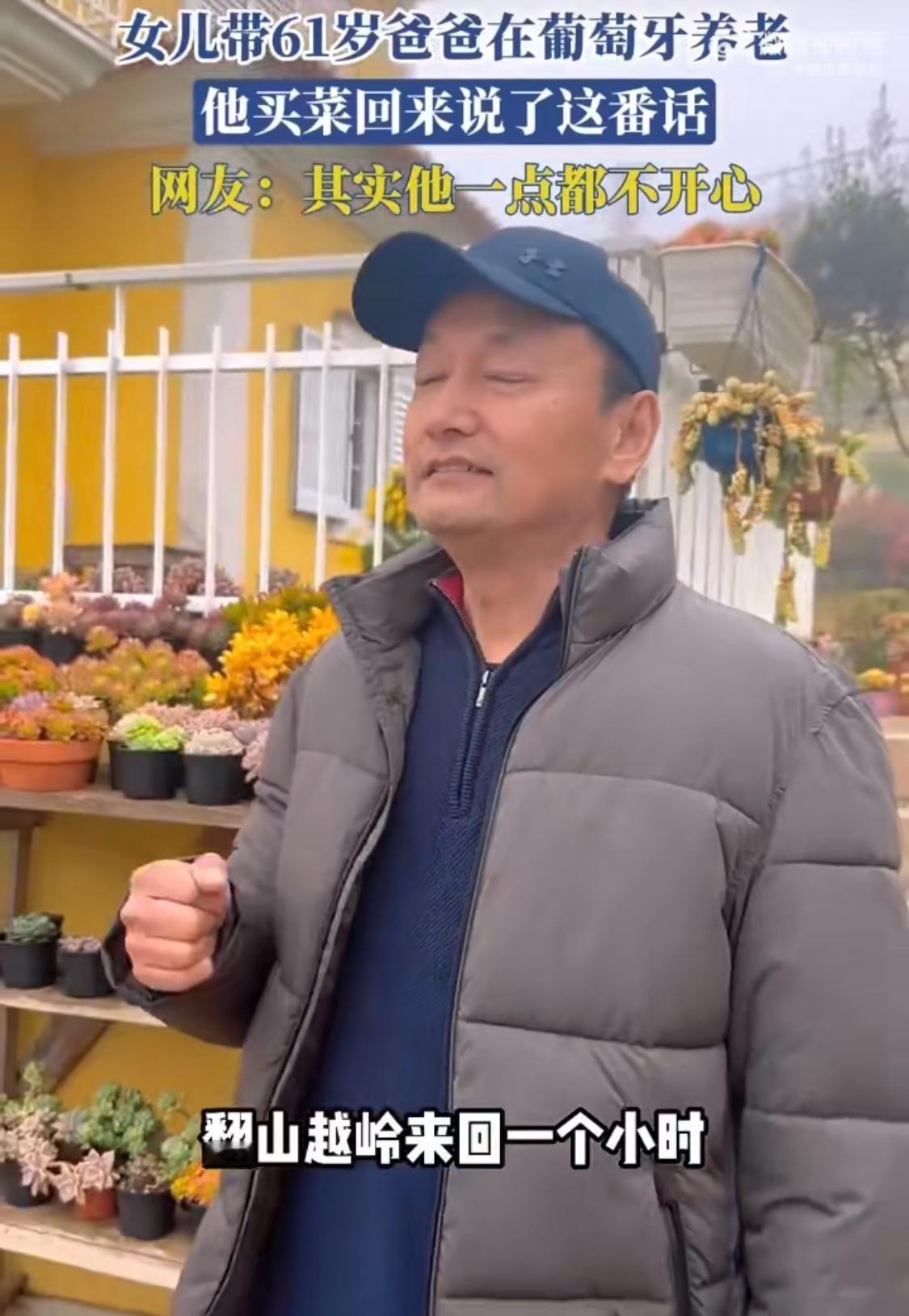 女儿将老人接至葡萄牙农村养老,问老人开心吗? 老人回答,翻山越岭一个小时去买菜,
