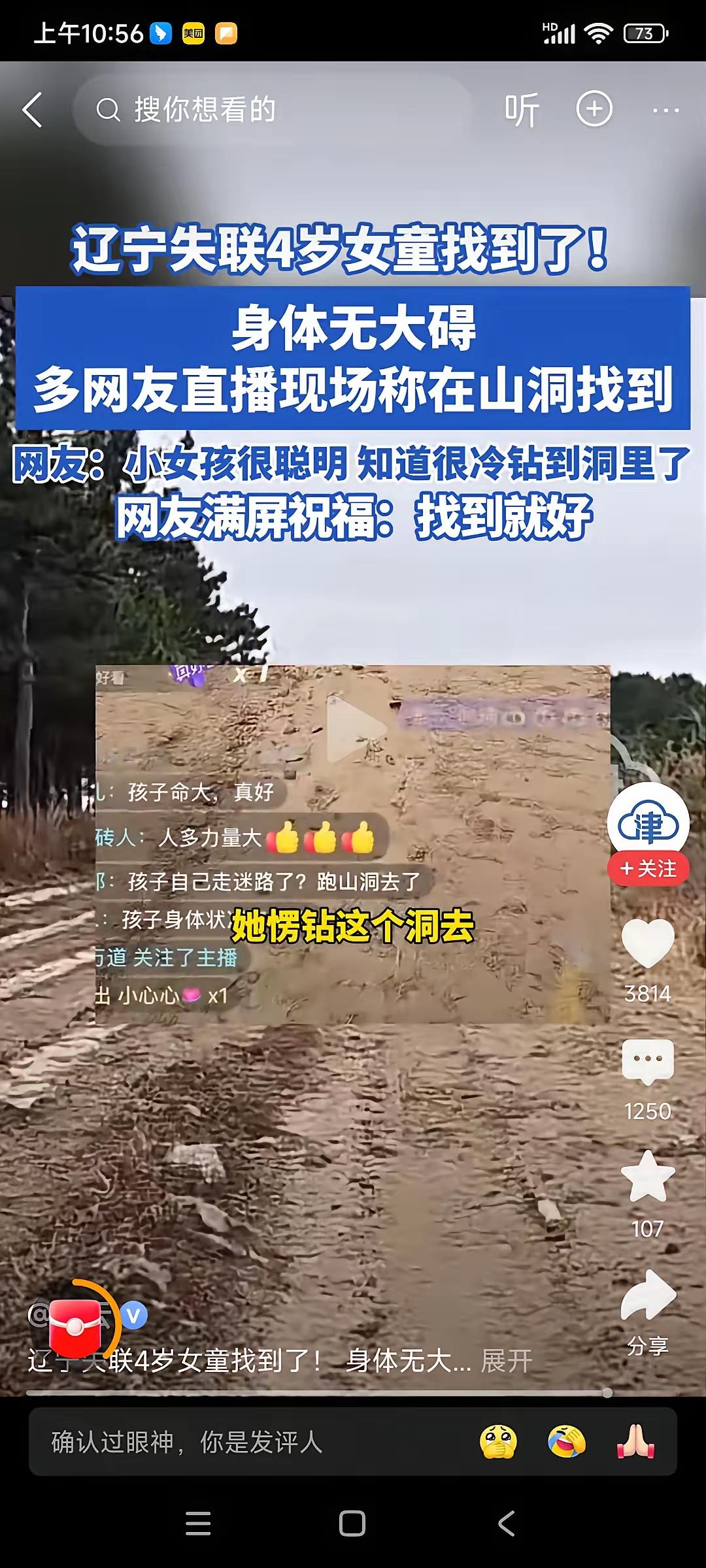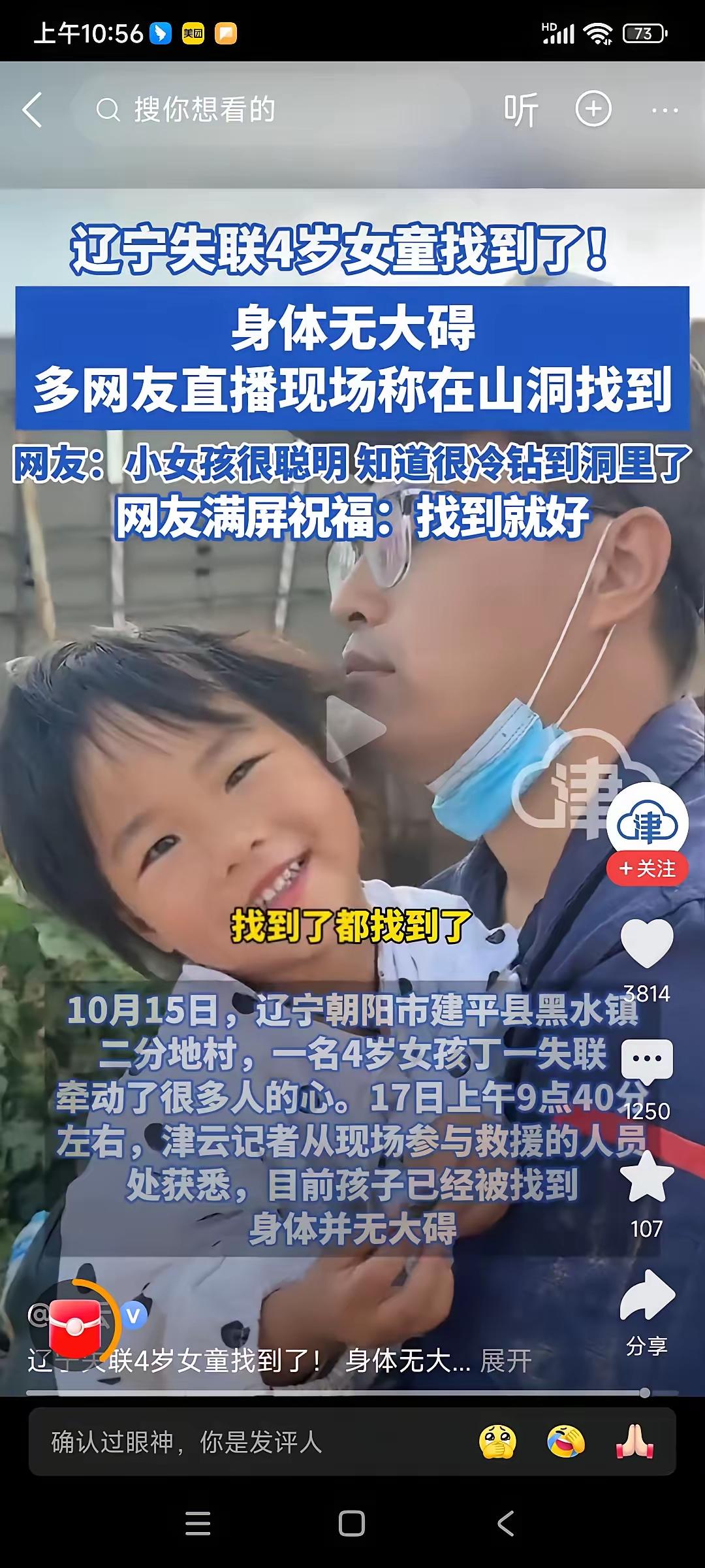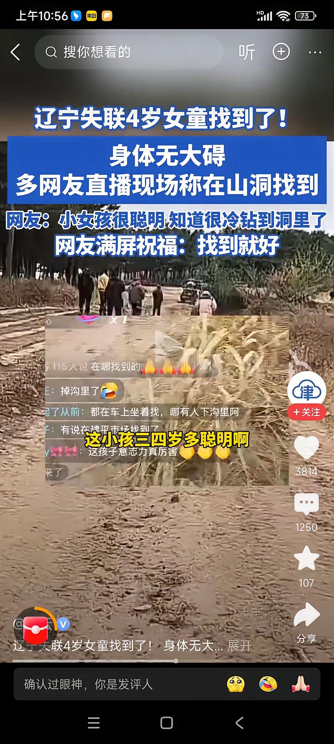 那个四岁的孩子找到了。 在离家一千五百米左右的沟壑里,躲过了两夜零度的雨。