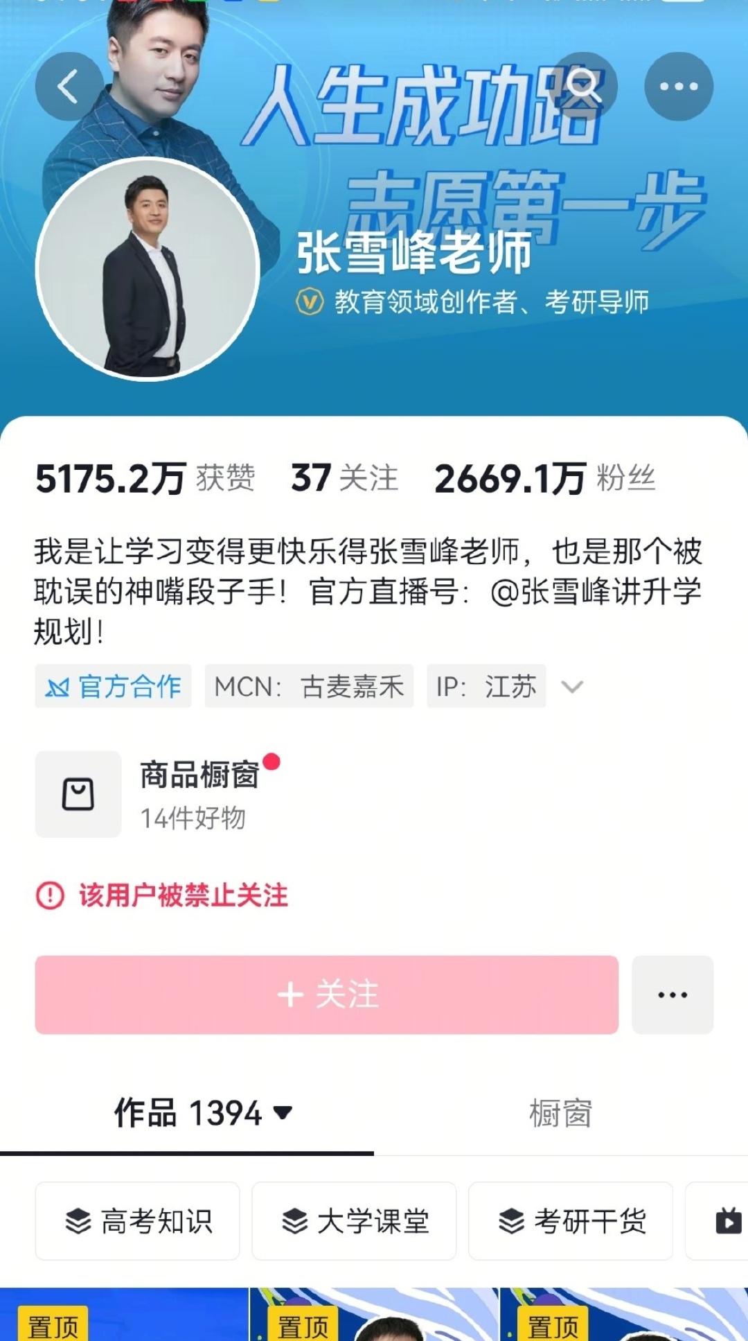 继张雪峰被禁止关注后 蓝战非也被禁止关注 蓝战非是一位千万粉丝的游戏主播,在赚够