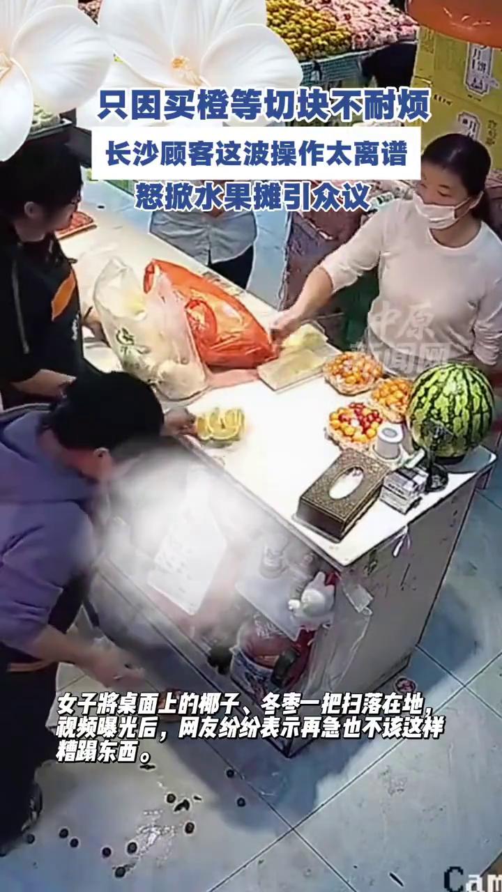 只因买橙等切块不耐烦,长沙顾客这波操作太离谱,怒掀水果摊引众议。 湖南长沙,一水