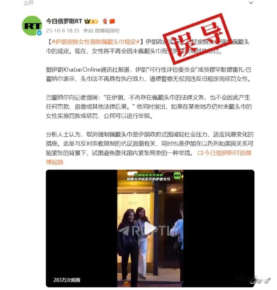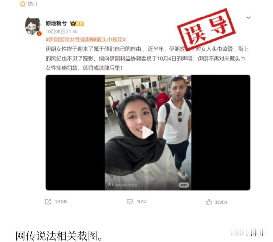 近日网络上出现伊朗正式废除女性强制佩戴头巾的规定不属实! 大家不要误解了! 国