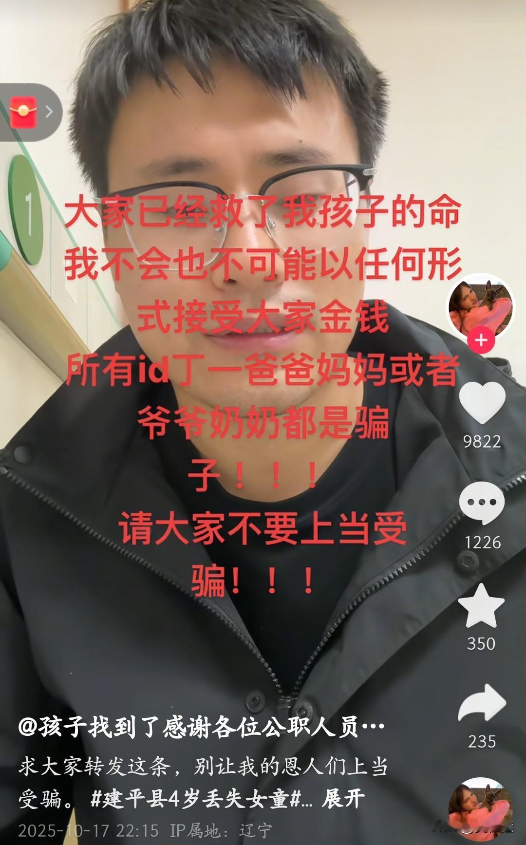 大家注意了,丁一的爸爸说:网上那些自称丁一爸爸妈妈爷爷奶奶的,全是骗子! 他特意叮嘱:“大家已经救了我孩子的命,我绝不会收任何钱,那些冒充家属的ID都是骗钱的,求大家别上当!” 再看病床上的丁一,正含着棒棒糖,奶声奶气地谢大家,谢谢大家给了她第二次生命!长大后会好好读书,成为像大家一样的好人,并说她爱大家!