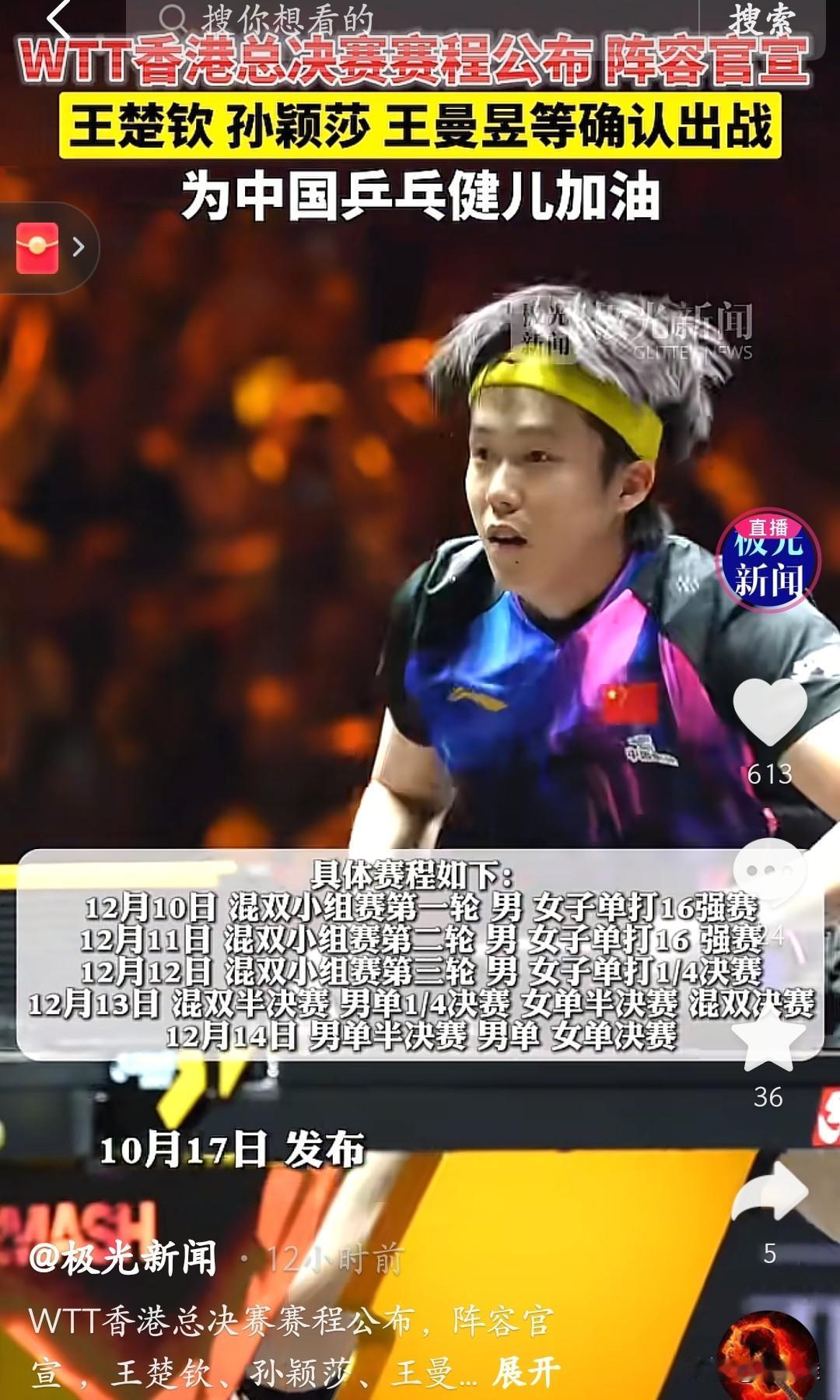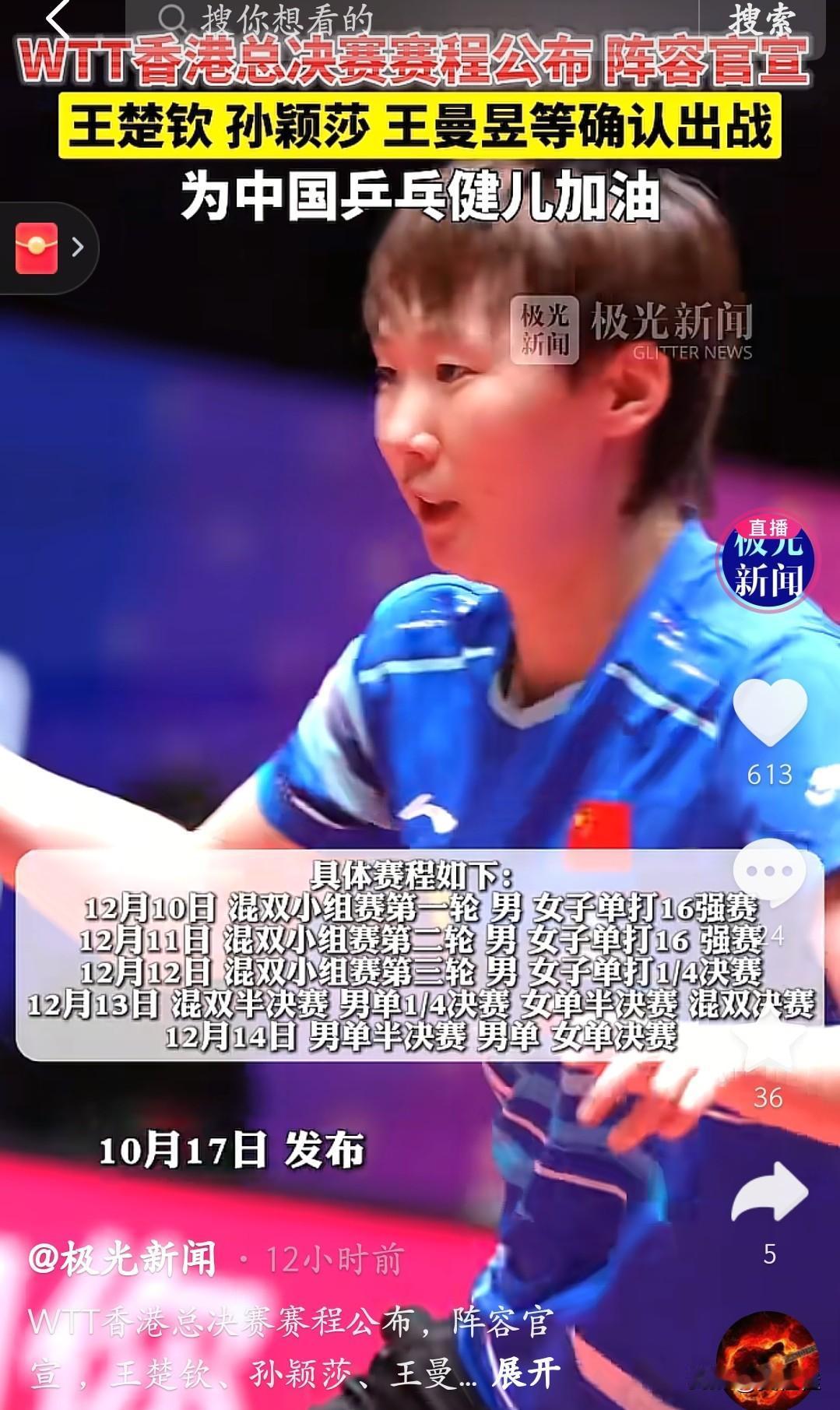 国乒好忙啊!刚结束密集的赛事,紧接着又要投入WTT香港总决赛的征程:12月10日