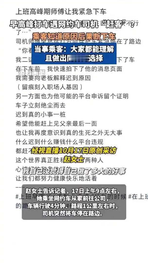 10月17日,北京一位网友分享的网约车经历格外暖心。早高峰时段,她搭乘网约车出行,车行驶约4分钟、1公里时,司机突然停车,告知她自己父亲病危,要立刻赶往医院,并与她协商让其下车。她没说二话,迅速下车,还拍了凭证以防因迟到被误解。 北京早高峰打车十分困难,她等了20多分钟才重新打到车。虽然最终迟到了,但老板表示理解。评论区里,网友纷纷为她点赞,还有人幽默留言要“送城市”给她。 此事中,乘客善良体谅,司机遇到紧急情况也提前沟通,着实暖心。希望生活中能多些这样的相互理解。 网约车经历 车网约车经历 打车经历 快车网约车 网约车聊天记录 北京网约车