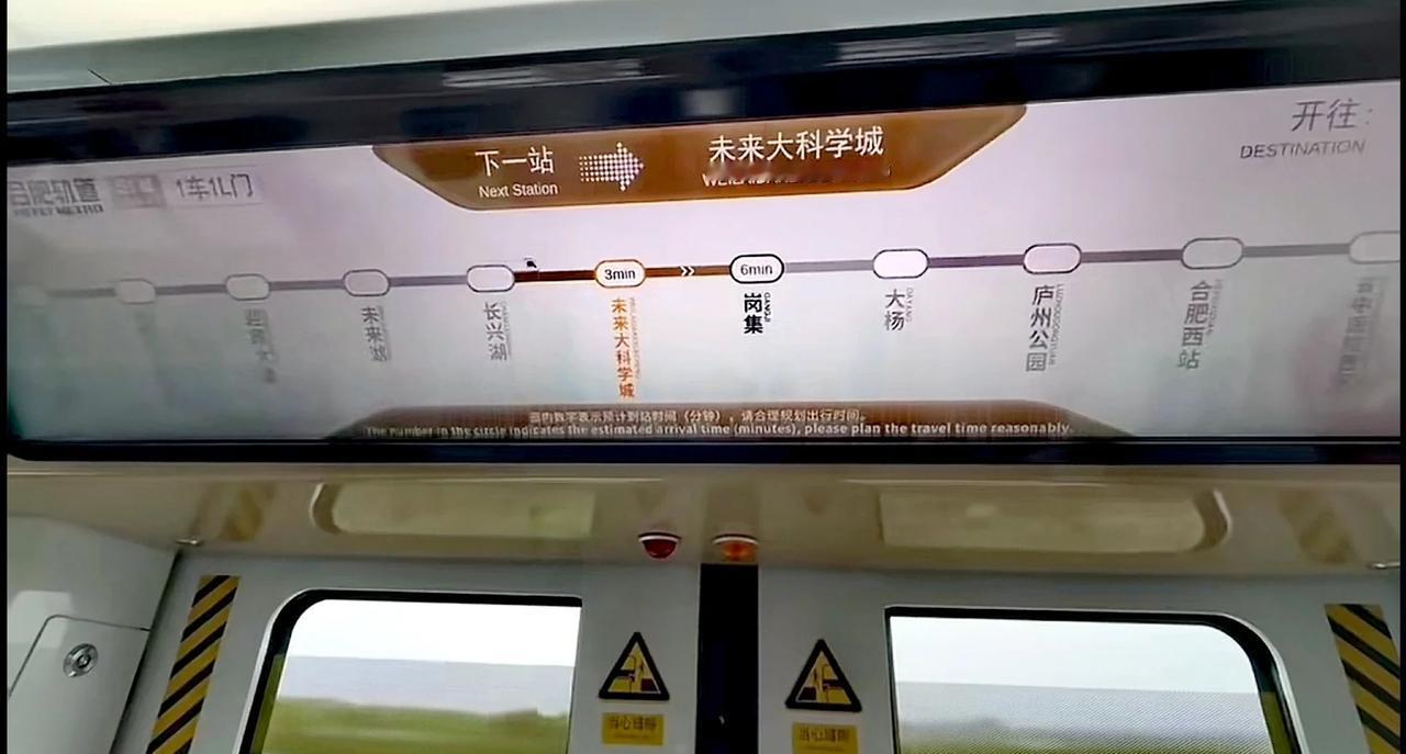 合肥地铁S1市域机场线列车内部实拍 合肥地铁S1线正在全线热滑调试中,车内显示屏