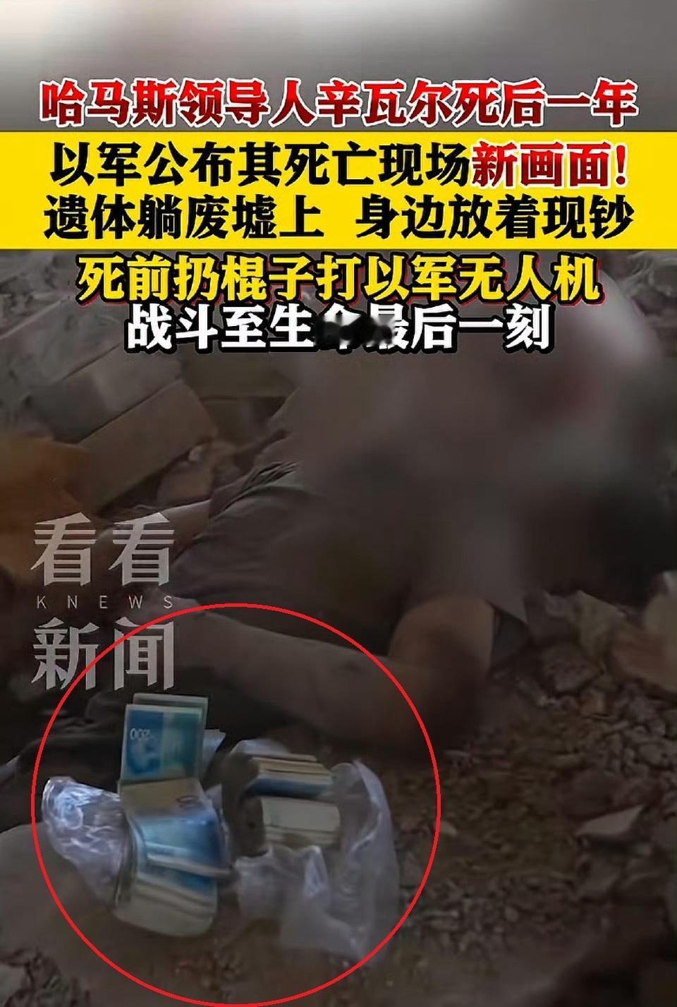 哈马斯辛瓦尔都死了一年,以色列再次发布新视频:身边发现不明巨款! 辛瓦尔最后一战,就是用棍子打以色列的无人机,但最后还是在战斗中阵亡了。时隔一年后,以色列又发布了,在拉法和他激战后的未公开视频。 视频里,在辛瓦尔遗体躺在的废墟边上,还有一大堆现金! 在房子都被炸碎了,到处都是水泥块烟尘情况下,干干净净的现金突然出现在身边。 难以想象,一个抱着战死决心的人,居然拿着一尘不染的现金去战斗!就是流浪两千年的智慧吗?想要证明辛瓦尔贪污,结果钞票却太新了。 这就是,连剧本都懒得应付了,这种作秀方式,只有一种人会相信,大家秒懂! 而那个以军401装甲旅旅长,就被疑为在战场上包围辛瓦尔,在辛瓦尔阵亡不到一个月就被哈马斯消灭了,也算是为他报了大仇!