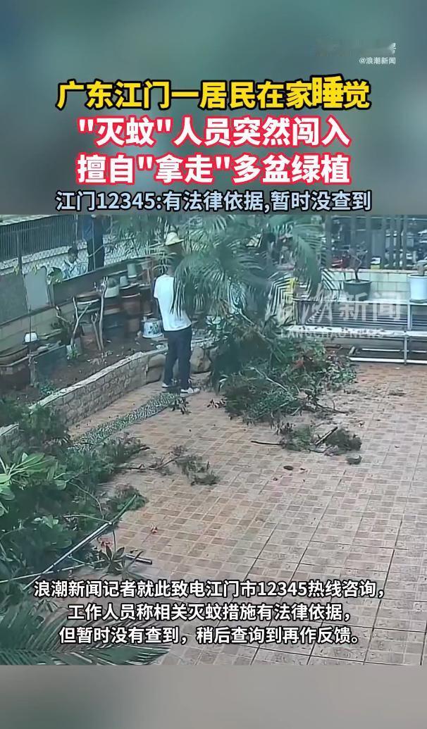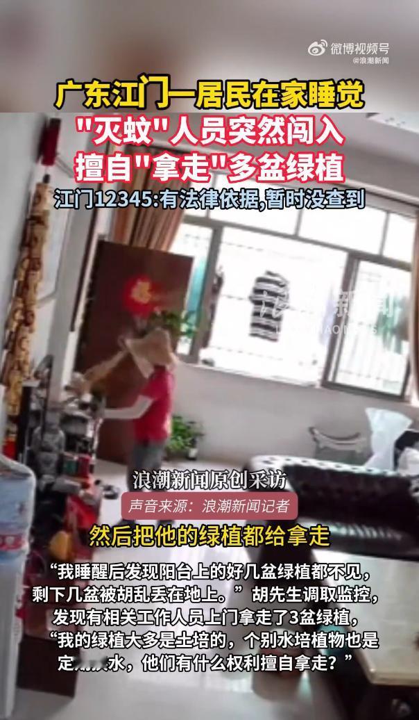 “严查到底!”10月16日,广东江门,一男子正在家中睡觉,突然,一名工作人员推门而入,在未经男子的允许下,擅自将他家中的多盆绿植拿走,还有几盆被胡乱丢在了地上!男子打电话进行投诉,对方告知有相关的法律依据,但暂时没有查到。网友:哪里来的钥匙? 近日,胡先生正在家睡觉,浑然不知自家大门已经被人打开,一名穿制服的工作人员径直走进阳台,把他精心养护的三盆绿植直接搬走,剩下几盆还被胡乱丢在地上,弄得满地泥土。 等胡先生睡醒发现时,只看到一片狼藉,赶紧调了监控才弄清来龙去脉。 更让人不安的是,门锁好好的,根本没有撬动的痕迹。这一下全网都炸了,大家最想问的就是:“到底是谁给的钥匙?” 有人猜是物业给的,可物业那边支支吾吾说不清楚,这把“神秘钥匙”就像个幽灵,一下戳破了“家是安全港湾”的安全感——连睡觉时家门都能被人随意推开,还有什么隐私可言? 后来大家才知道,这是当地在搞灭蚊行动,说是为了防控基孔肯雅热病毒。 可灭蚊归灭蚊,用得着闯进门搬绿植吗?胡先生的绿植大多是土培的,就算有几盆水培也天天换水,根本不是蚊子滋生的地方。 而且不止胡先生一家,有网友说自家院子的树被人翻墙砍了,还有人养了十几年的铁树也遭了殃,不少人家都遇到了类似的事儿。 胡先生越想越气,立马打电话给街道办投诉。对方倒是挺干脆,说行动“有相关法律依据”,可等胡先生追问具体是哪条法律、哪项规定时,对方却改口说“暂时没有查到”,只让他先登记等着。 这话听着就让人窝火,合着法律成了随口能用的幌子,需要的时候就搬出来撑场面,真要较真了就说查不到,这不是明摆着糊弄人吗? 有懂法的人说,未经允许进别人家里,本身就可能涉嫌非法侵入住宅,严重的还得负刑事责任。 之前有社区发过通知,让业主交钥匙配合消杀,逾期不交就强制开锁,虽然后来说是作废了,但从这次的事儿看,这种“想进就进”的风气根本没刹住。 大家反感的从来不是灭蚊这件好事,毕竟防控疫情是为了大家好,可再正当的理由,也不能越过法律的边界,更不能不把居民的权利当回事。 网友们的讨论里,“哪里来的钥匙”成了最热的问题。这把钥匙不只是开门的工具,更像是权力越界的象征。 如果为了公共利益就能随意闯进私宅、搬别人的东西,那所谓的“法治底线”不就成了摆设? 有网友说得好,就算要入户消杀,提前打个电话、敲个门,跟业主商量一下,大多数人肯定愿意配合,可现在这种“先闯再说”的做法,只会把好事办砸。 那句“有法可依但查不到”的回应,比擅自闯宅更伤人心,因为它暴露了权力运行的随意性——连自己依据什么规定办事都搞不清楚,又怎么能保证行动不出格?