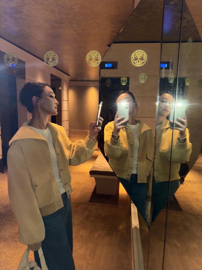 最近周迅在旅行的时候搭配的很有特色,看起来年轻又时尚,她还特意给自己过了一个生日。 周迅里面穿白色打底衫,外面套装米色的大翻领外套,两件衣服叠穿的效果很不错。 她下身穿蓝色牛仔裤,还挎着白色的包包,尽显高贵之美。 周迅这次特意把头发挽了起来,还画着精致的妆容,真的是很有吸引力。 她戴着银色的耳坠,眼妆非常的浓,依然是很有灵气。 她用白色背心搭配卡其色裤子也很美,周迅捧着蛋糕的样子像个迷人的少女,不得不说她也是个不老女神啊。