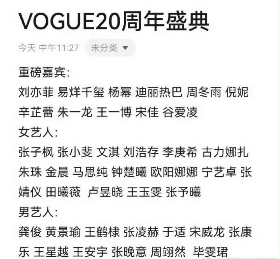 网传VOGUE20周年盛典嘉宾