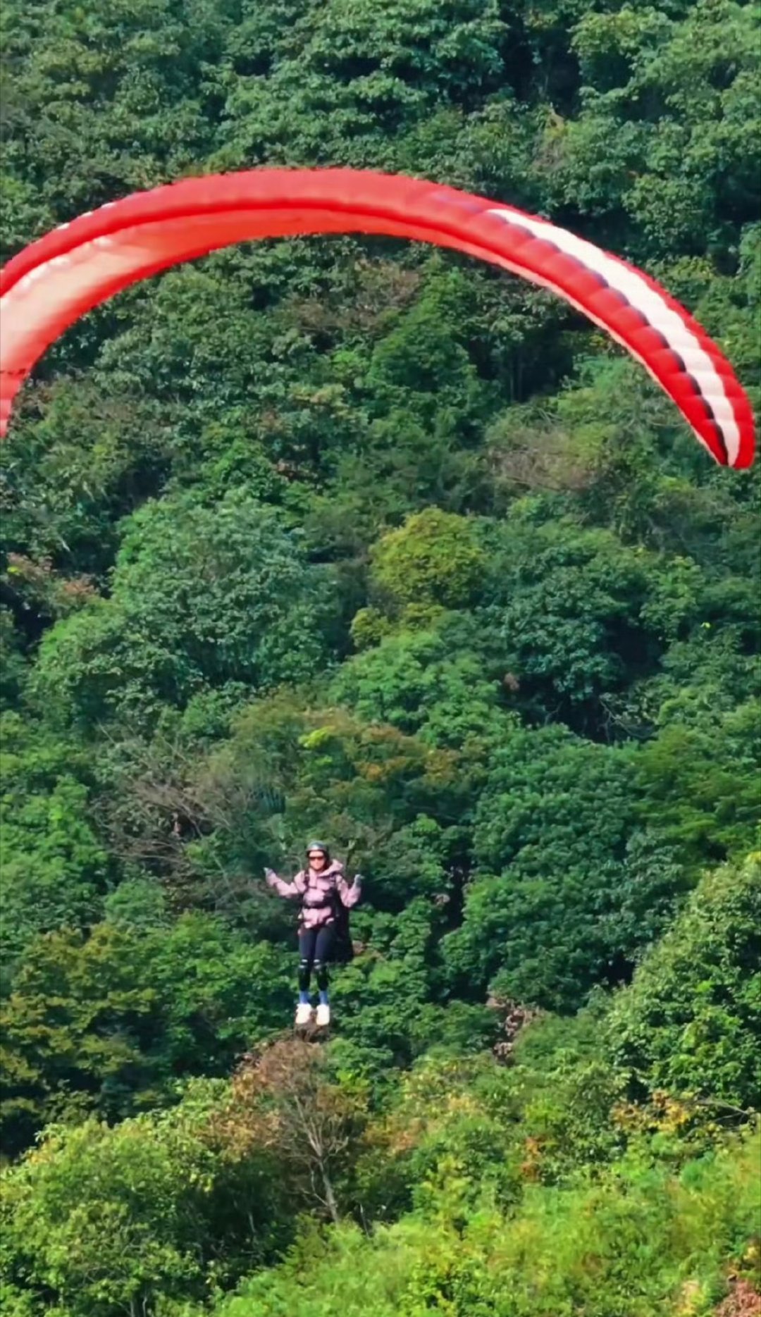 这居然是任敏 任敏太有魄力了!滑翔伞独自飞真的超有挑战性,很多人都会害怕,可她却能从容享受,还霸气喊话“今天是飞行员”,这种敢于突破、直面挑战的态度,太值得点赞!