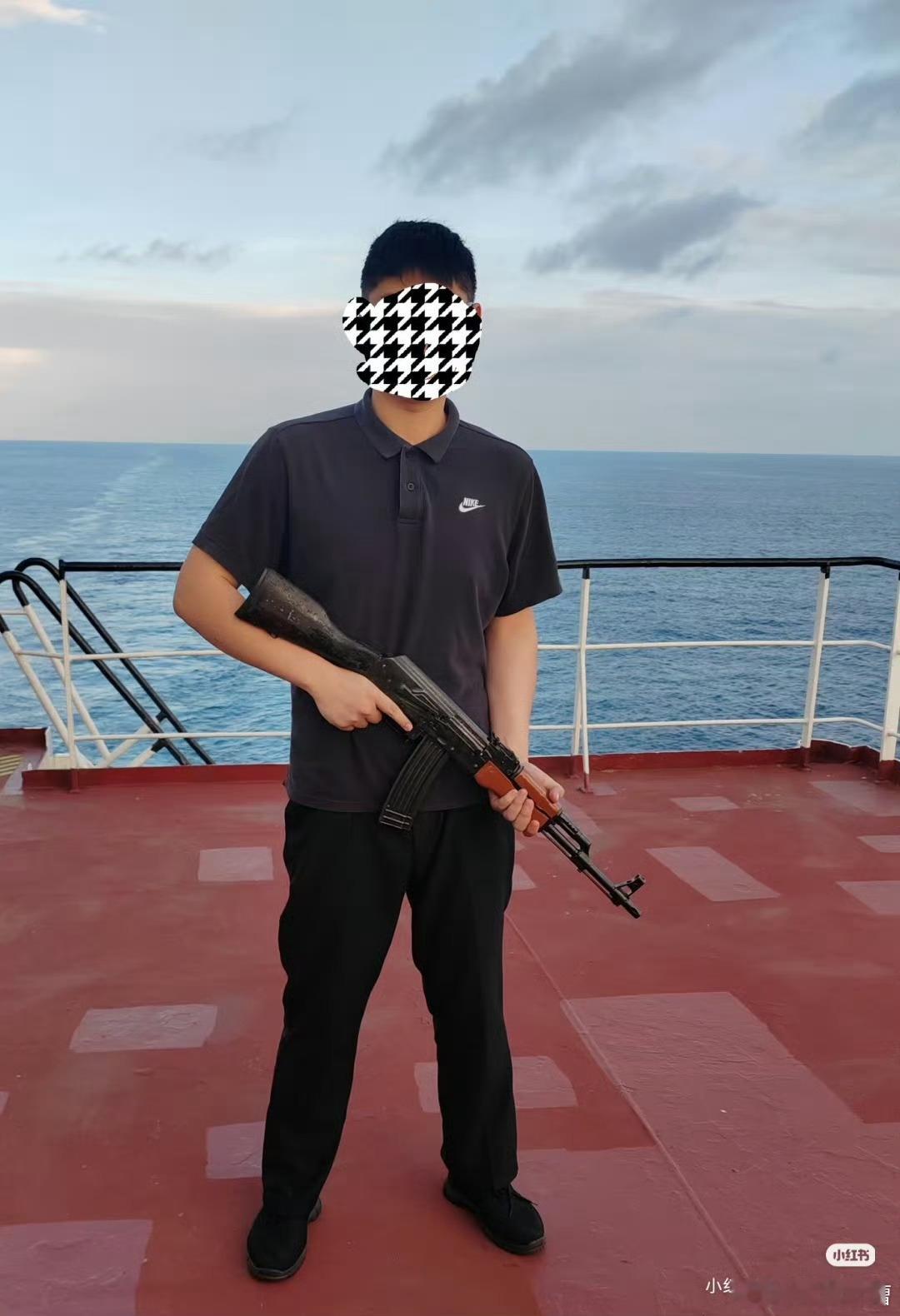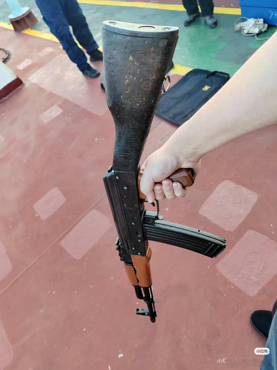 过航索马里亚丁湾海域的国际商船用上了真枪,这枪看着像56式,实际上是当年为了卖钱而研发的5.56毫米口径56式,正式名称叫84式,专攻北美市场。