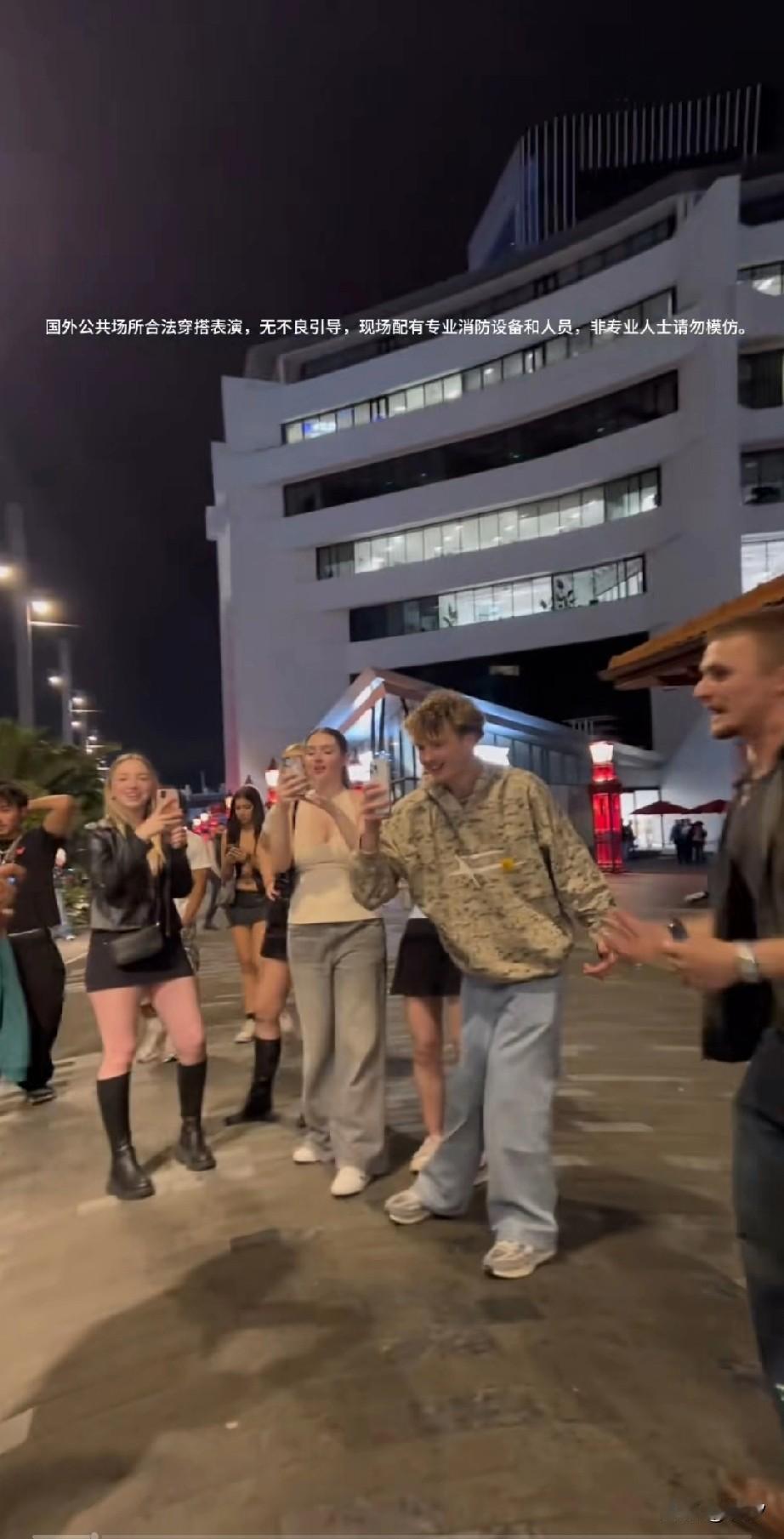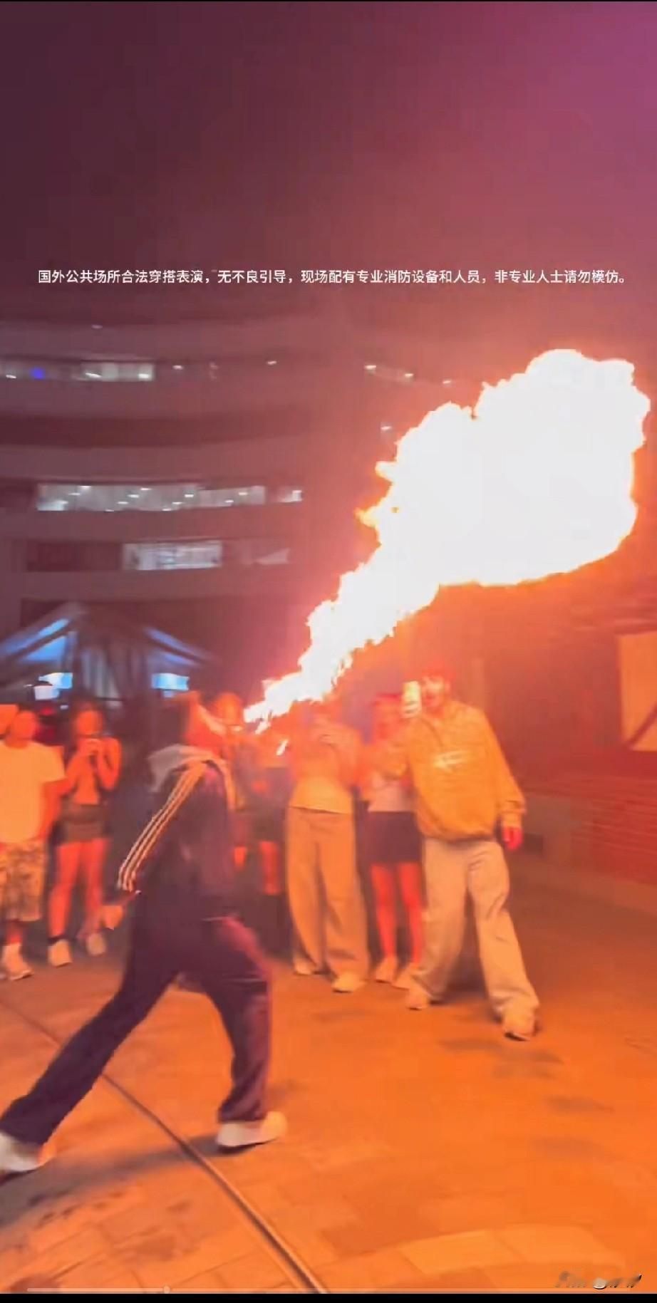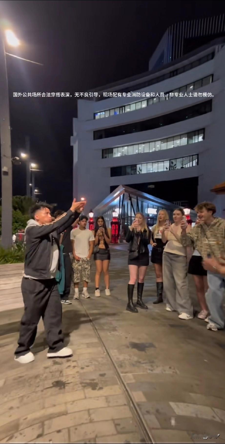 国外留学生展示传统技艺, 直接震惊老外, 周围围着一大群老外围着他, 还以为是明星, 结果是中国小伙表演喷火, 只见小伙喝了一口汽油, 手中举着一个打火机, 准备完毕后, 用口一喷直接一股冲天火焰飞起, 在夜晚超级震撼, 难怪老外会有兴趣, 因为看过的这种表演的都觉得刺激, 老外也不例外纷纷举着手机拍摄, 小伙子俨然成了他们中最受欢迎的一个,可能他们觉得这就是魔法吧, 接着小伙来了第二次, 现场老外直接兴奋蹦了起来, 事后老外纷纷和中国小伙拥抱握手, 称赞他哥们你太牛了! 在他们眼中这就是哈利波特的火系魔法! 大家觉得中国这门传统技艺为什么能够吸引年轻老外? 危险动作请勿模仿! 传统文化你知道多少 分享中华传统文化 传统文化你了解多少 最美表演 非遗喷火表演