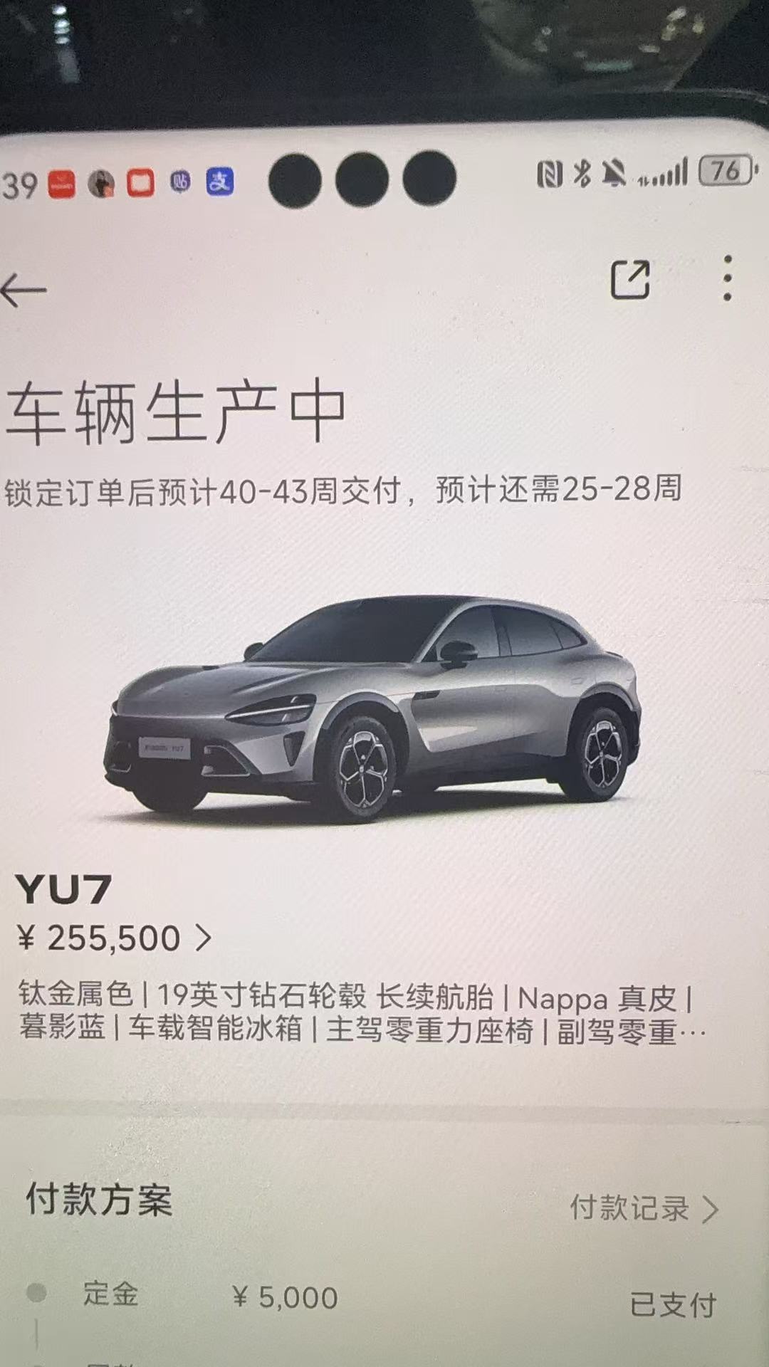 在游戏群里偶然认识了一位智界R7车友,其实他之前就下定了YU7,5000块花出去了,车辆也在排产了,但实在是要等太久。