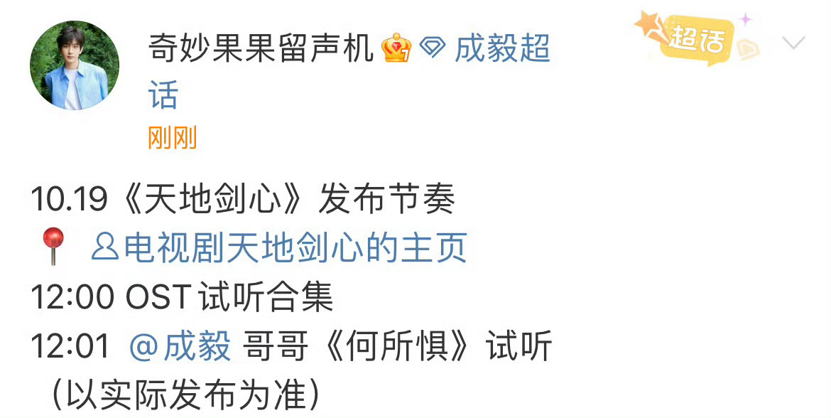 成毅天地剑心OST试听天地剑心ost发布节奏天地剑心ost发布节奏,可以可以,*͈ᴗ͈ˬᴗ͈ෆ