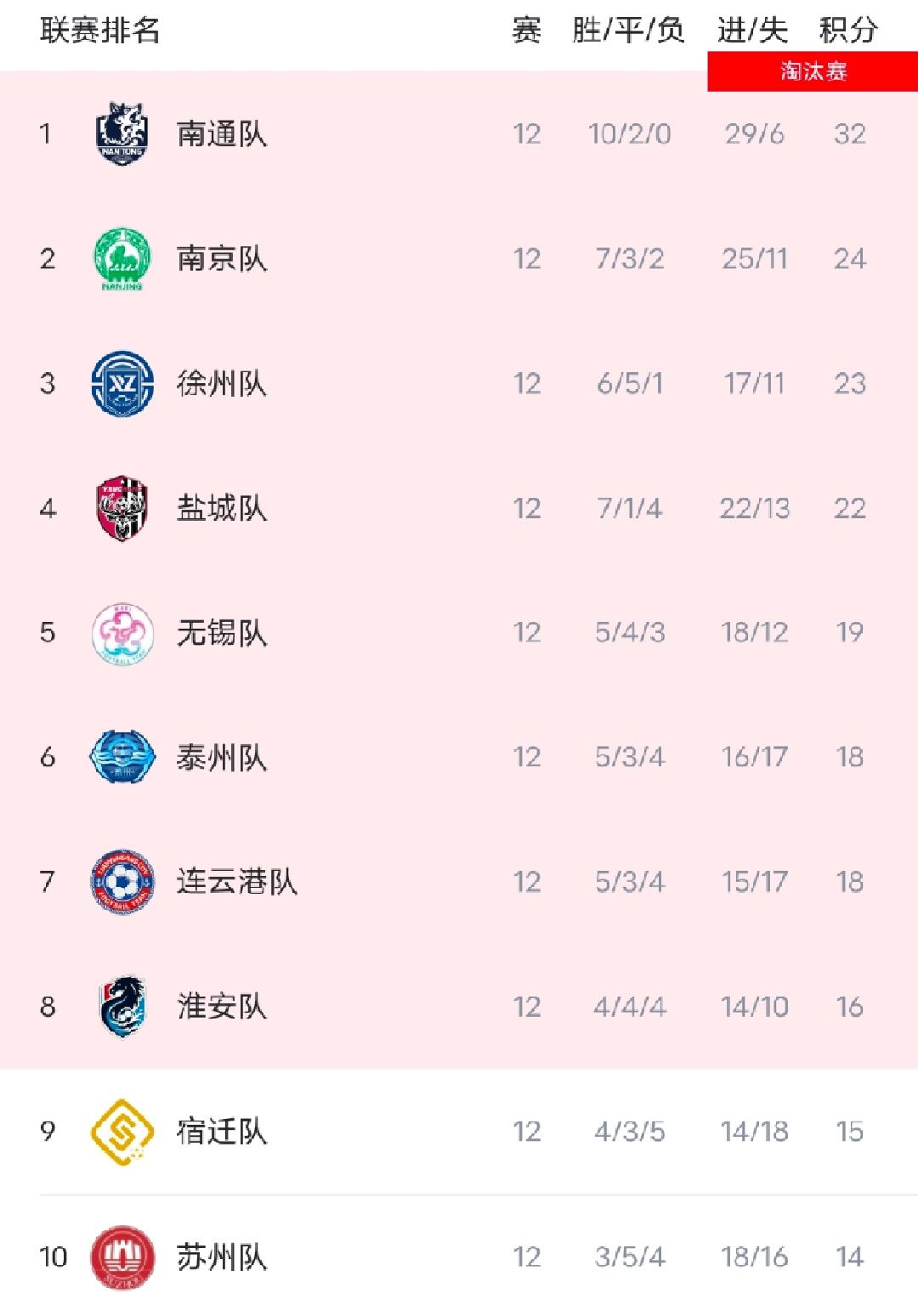 值得一提的是,泰州在常规赛末轮才确定晋级,那轮比赛他们面对的正是南京,比赛的结果是泰州3-0南京,泰州将自己的积分提升到了18分,惊险闯入淘汰赛的舞台。倘若那场比赛泰州输给南京,从结果来看,泰州将与积分榜第九的宿迁同分,但净胜球更少,最终将会无缘淘汰赛。