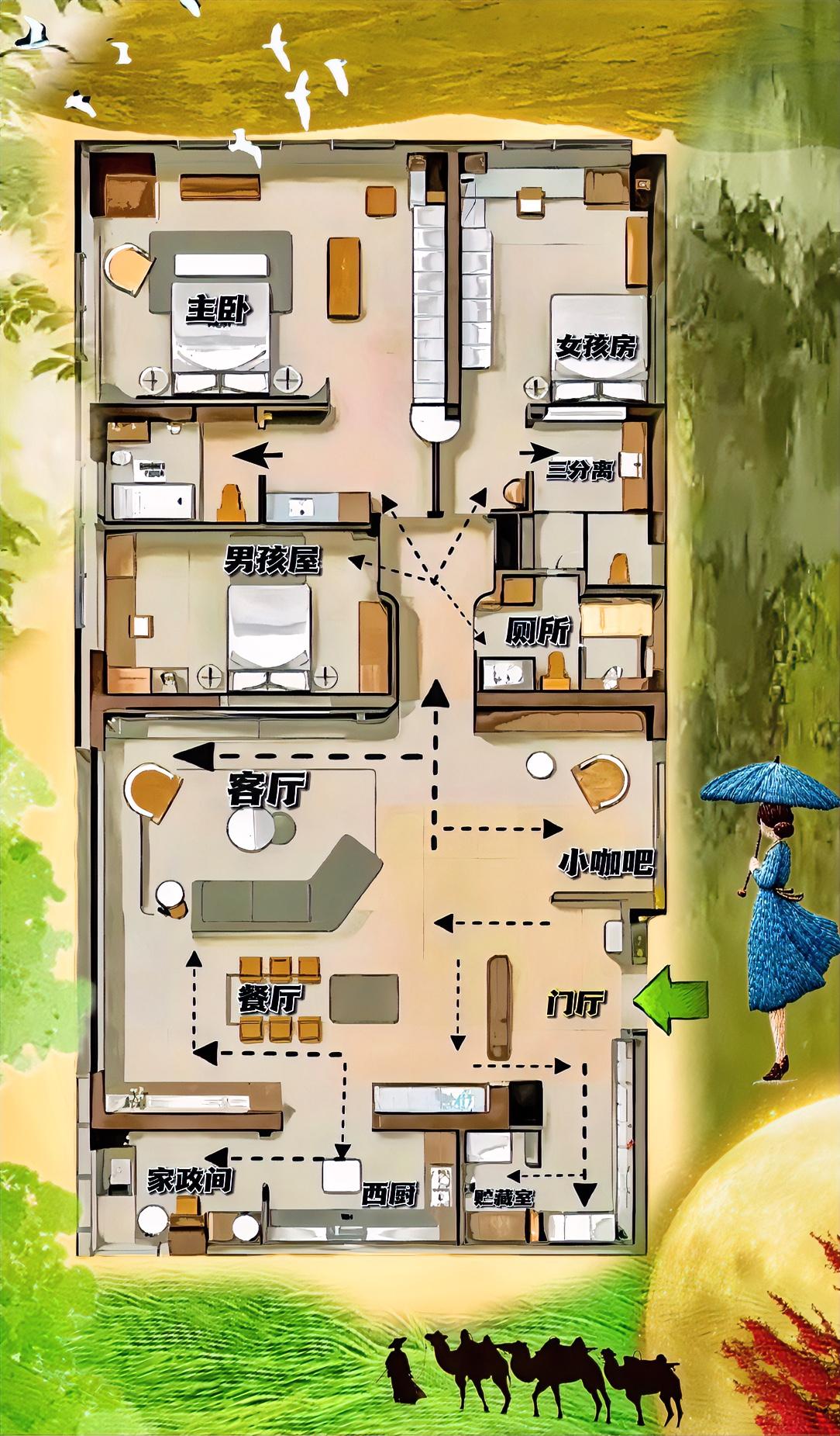 181㎡ 茶壶煮饺子,客厅肚子里有,卧室也是有货的,就是3㎡ 玄关,太坦诚了,一个颜值不错的收纳柜,成为大平层一股清流! 说白了,80㎡ 大横厅,找活儿,用三个洄游,划出四个空间,呈现的别具匠心的公区! 沙发是围合式的,餐厅带中岛的,鞋柜是悬空的,休闲厅是空灵的,没有强迫症,决对能在成年人的客厅,找到二娃的童话。 虽然大厅改造,是科技狠活产物,脱离清水房的低级趣味! 二米长喇叭小过道,是赠予三个卧室,一片有温度星空。 用错位,弧形,组合,重新改造后的大人房和小孩屋,更有生活情趣,融入各种不同生活习惯。 尤其是书台+书柜+床头,巧妙连接一体化,普通的卧室组合空间,起化学反应,更人性化,空间显得格外宽敞! 葆树(张颂文)更像是这部电影里的‘秤砣’,是故事里的基石,这个角色的确立和稳定输出,才能有美云(辛芷蕾)的充分发挥。” 感觉,卧室就是我的整个宇宙。 一股书香世家的味儿,扑面而来! 大平层的终点,是,小空间升级为大空间! 结成两个字,一个通,另一个是透,通透明亮就是大房子的剪影 !
