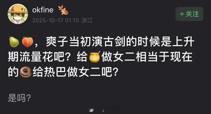因为爽子当初因为谈恋爱期就只跟张翰演剧超级恋爱脑,也不是第一次客串作配了都在张翰剧里,古剑之后是她流量巅峰,因为整容话题➕跟张翰分手接手了cpf,这点有点像巴巴接手陆地,两对都是全民磕cp