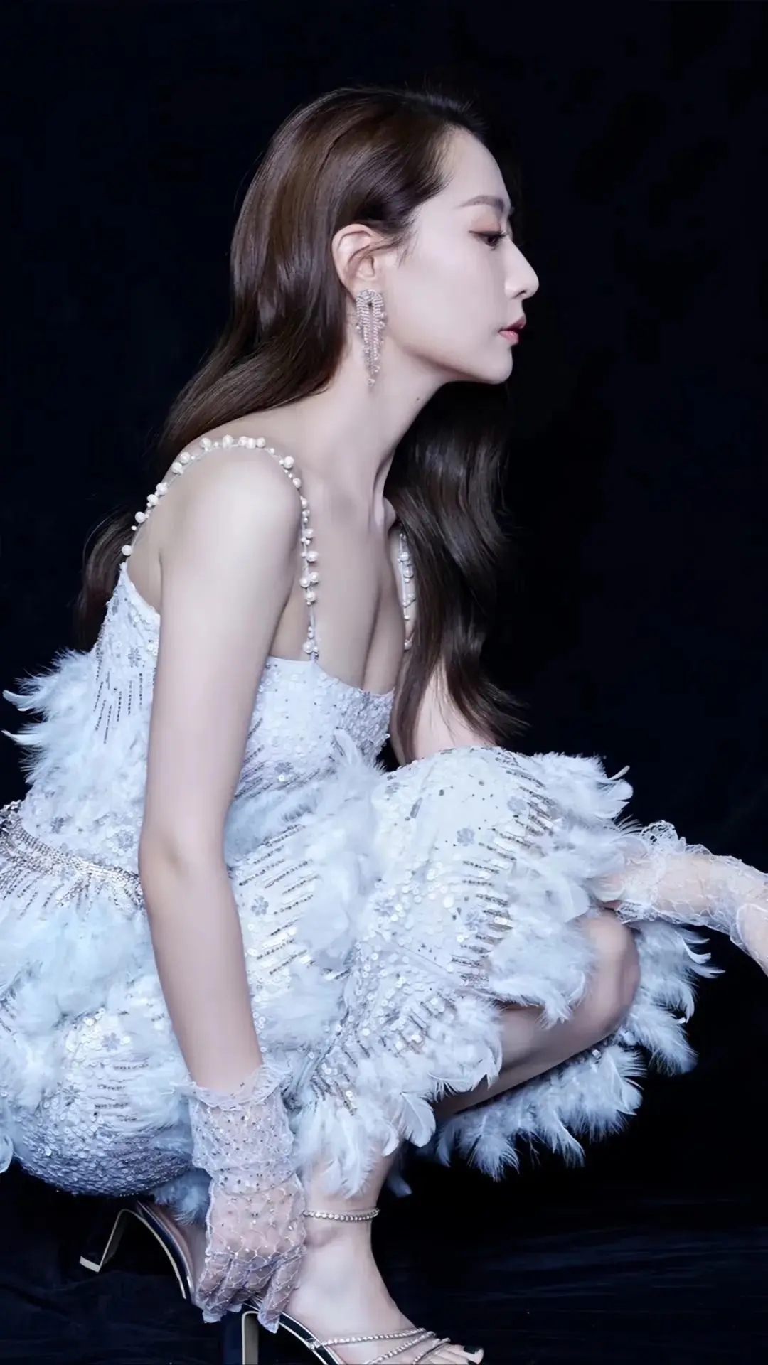 白冰|吊带亮片羽毛裙,迷丝人了!