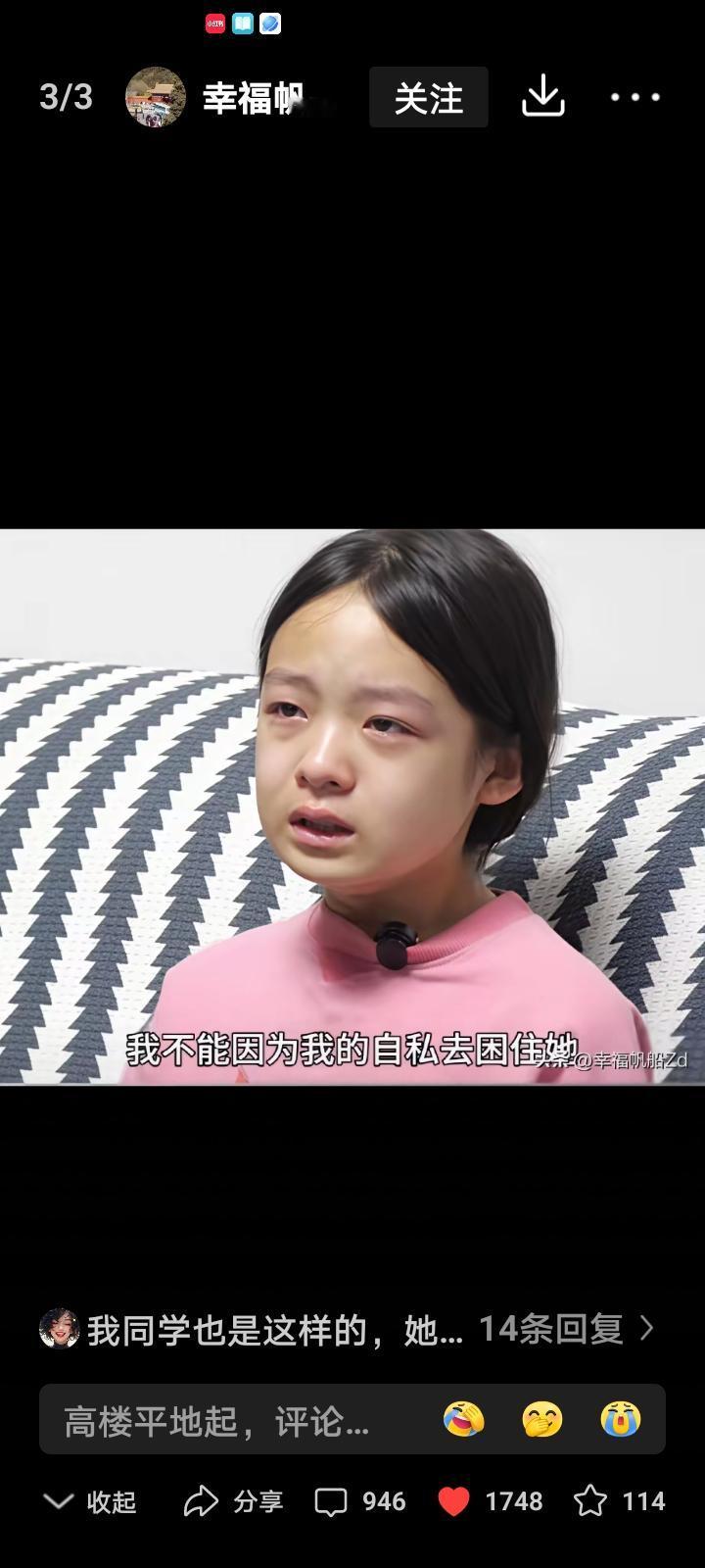 爸爸去世,妈妈丢下10岁的女儿改嫁。女儿:我不能因自己的自私困住妈妈的幸福。孩子懂事的让人心痛。 视频中女孩的妈妈,在丈夫去世以后,因为生活困难,撇下10岁的女儿又改嫁他人。女孩红着眼睛,哽咽的说出了不符合她年龄的话语。 问:你妈妈改嫁的时候跟你商量过吗? 女孩:商量过,妈妈说没了爸爸,她一个人没有能力抚养我,只有再婚以后才能更好的照顾我。 问:那你为什么不跟随妈妈一块过去呢? 女孩:谁愿意接受别人的孩子呢?要是那样的话,就没有人愿意娶妈妈了。我不能因为自己的自私毁了妈妈的幸福。 她说,妈妈每隔一段时间就会回家来看我,给我买一些吃的用的东西。虽然妈妈不能在我身边陪伴,但是我没有失去母爱,妈妈在用另一种方式爱我。 只有10岁的孩子说出这样的话,怎能不让人心痛呢。妈妈的心也太狠了,这么懂事的孩子怎么忍心改嫁呢?就是改嫁也必须的把女儿带在身边。 这孩子的话听着就扎心,才10岁啊,本该撒娇耍赖的年纪,却懂事得像个小大人,还反过来替妈妈着想。说妈妈心狠吧,或许她真有生活的难处,但说她无私,又实在没法原谅她把孩子独自留下。 哪有什么“别人不接受”,真要是把孩子放第一位,改嫁前就该把孩子的去处安排妥当,找个能接受孩子的人,或者拼尽全力也把孩子带在身边。孩子嘴上说没失去母爱,可深夜里想妈妈的时候,谁能陪她?这种懂事根本不是福气,是被逼出来的心酸。 各位读者你们怎么看?欢迎在评论区讨论。