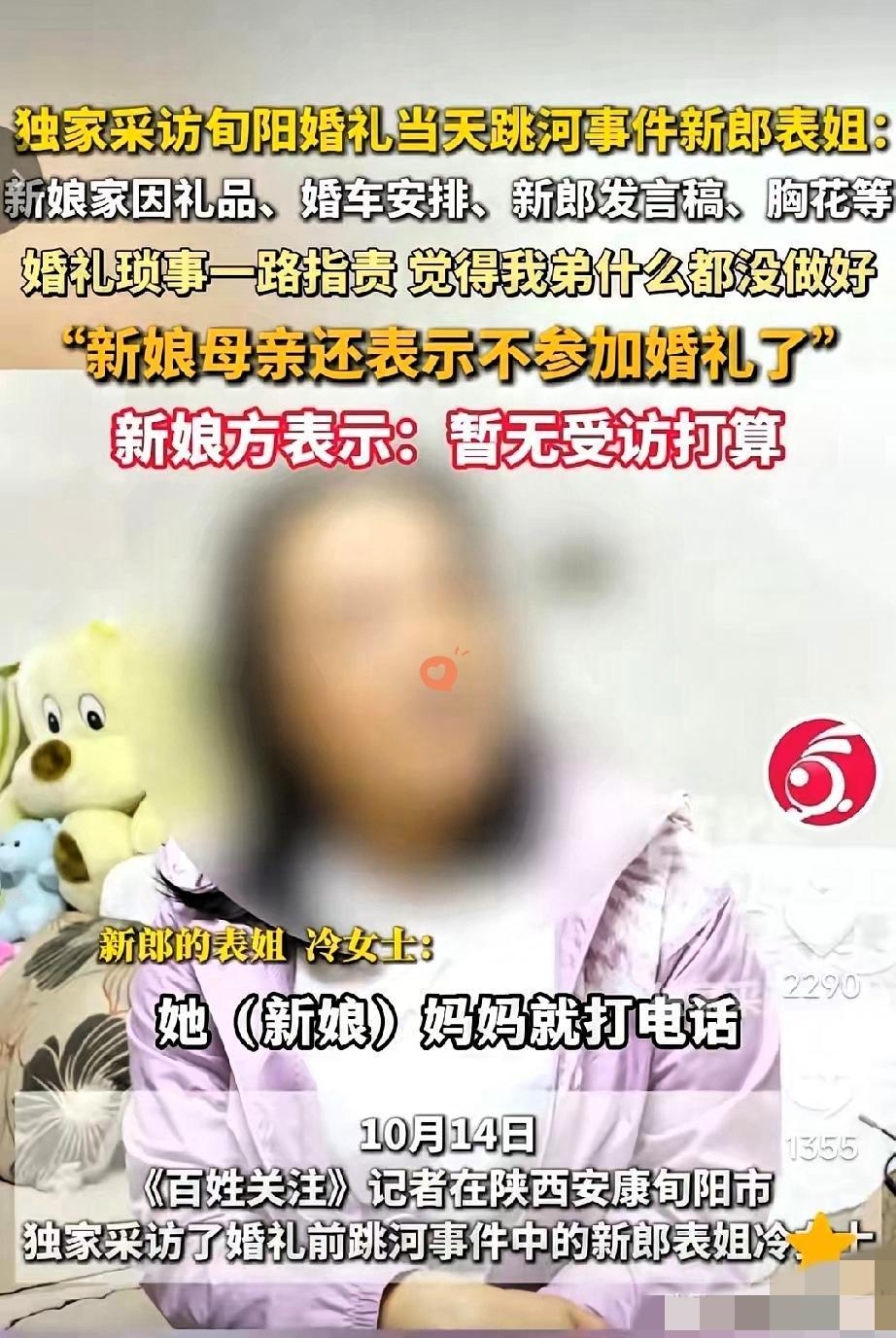旬阳新郎跳河这事儿,越看越让人揪心!结婚当天啊, 本该是最开心的日子,新郎却被逼到跳桥,表姐哭着说没抓住他,可新娘全程坐在车里没动静——这哪是结婚,分明是一场压垮人的“闹剧”! 新娘妈一遍遍挑刺,嫌八样礼只带四样、婚车没到就说不参加婚礼;新娘也跟着抱怨,从礼品到胸花啥都嫌不好,新郎憋着不说话最后哭了,表姐劝都劝不住。 认识十几年的人,怎么在婚礼当天连一点体谅都没有?新郎最后说对不起爸妈,得多绝望才会做出这种事? 说到底,结婚该是两个人互相包容,不是一方单方面的委屈。你觉得要是新娘和她妈当时少点挑剔,这悲剧能避免吗?