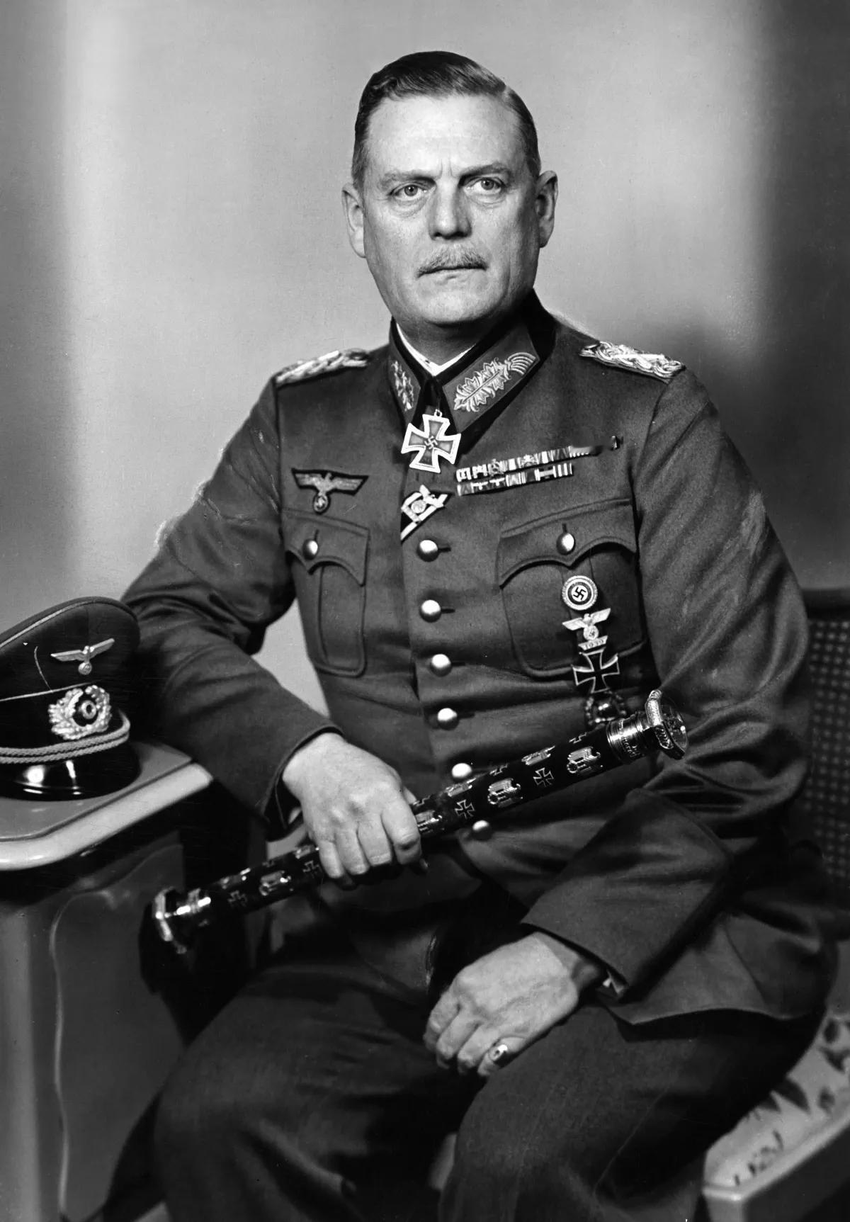 画面离有一位上将和一位元帅,有意思的是俩人都签署过投降书——1940年,德国西部,巴特明斯特艾费尔市,“岩巢”大本营。国防军最高统帅部作战局局长阿尔弗雷德·约德尔少将(前景)、国防军最高统帅部长官威廉·凯特尔上将和阿道夫·希特勒与正对着地图讨论法国战役的进程。众人身后站立着约德尔的副官维利·戴勒少校。 约德尔(参见图2)作为国防军最高统帅部作战指挥核心,直接策划了挪威、西欧和巴尔干战役。1945年5月7日,约德尔代表德国在法国兰斯向盟军签署初步投降书(苏联认为该仪式缺乏苏方代表,要求重新举行正式签署程序)。后于纽伦堡审判被判处绞刑。 凯特尔(参见图3)曾被德军高级将领戏称为“点头元帅”,他对希特勒唯命是从,负责将元首指令转化为军事命令。1945年5月8日24时,凯特尔代表德国在柏林郊区卡尔斯霍尔特的苏军作战指挥部正式签署无条件投降书。这位死硬分子后于纽伦堡被处决。 “岩巢”大本营是希特勒在法国战役期间的指挥中枢,位于德国西部艾菲尔山区齐格菲防线深处的加固地下掩体群。