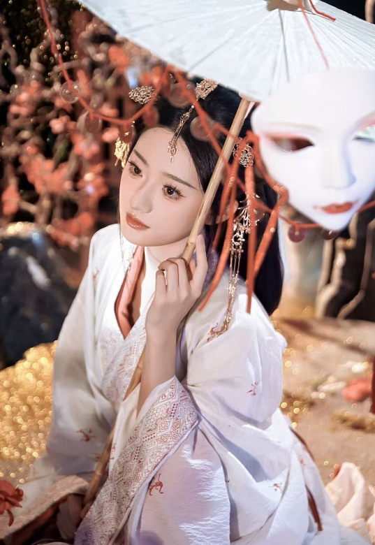 机智张镜头下的杨雨潼,一袭白袍红花,宛如从画中走出的仙子,每一帧都美到让人移不开眼。
