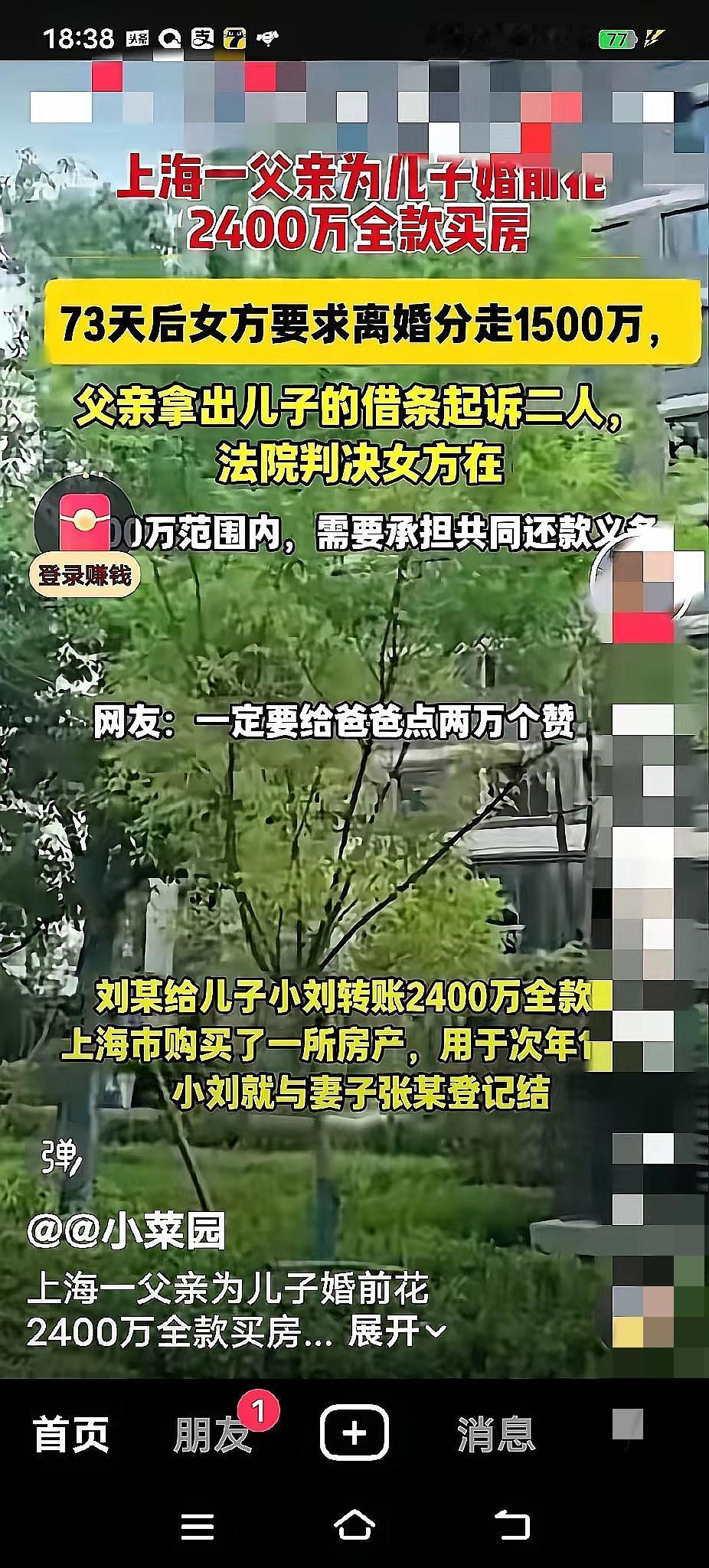 所有生儿子的学到了没有?朋友说以后儿子结婚先打借条, 以防被“捞女”摆一道,我倒觉得借条没必要,反而伤和气。 婚前财产本就受法律保护,全款房写父母名、把证件攥紧,这才是实在的防护。 就像视频里那对,结婚73天女方就想分1500万,这哪是结婚,分明是想走捷径。 但咱们也别把婚姻搞得太算计,多数人结婚还是奔着好好过日子来的,防的是极少数别有用心的人,不是防真心待你的另一半。 你觉得婚前财产该怎么安排,才能既护好自己,又不影响感情呢?来说说你的想法~
