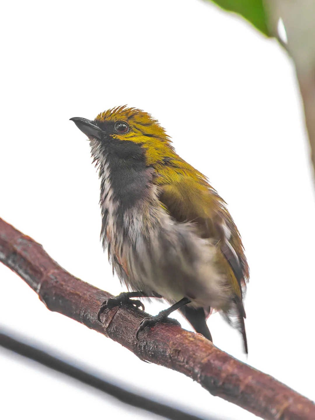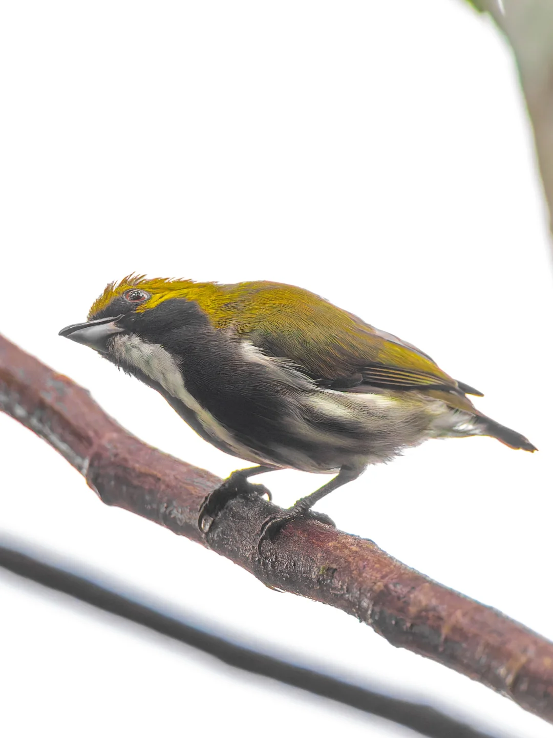 绿背锯齿啄花鸟是菲律宾特有,金橄榄色的背部非常漂亮,喉咙两侧至胸部有两条宽阔的暗灰色条纹。
