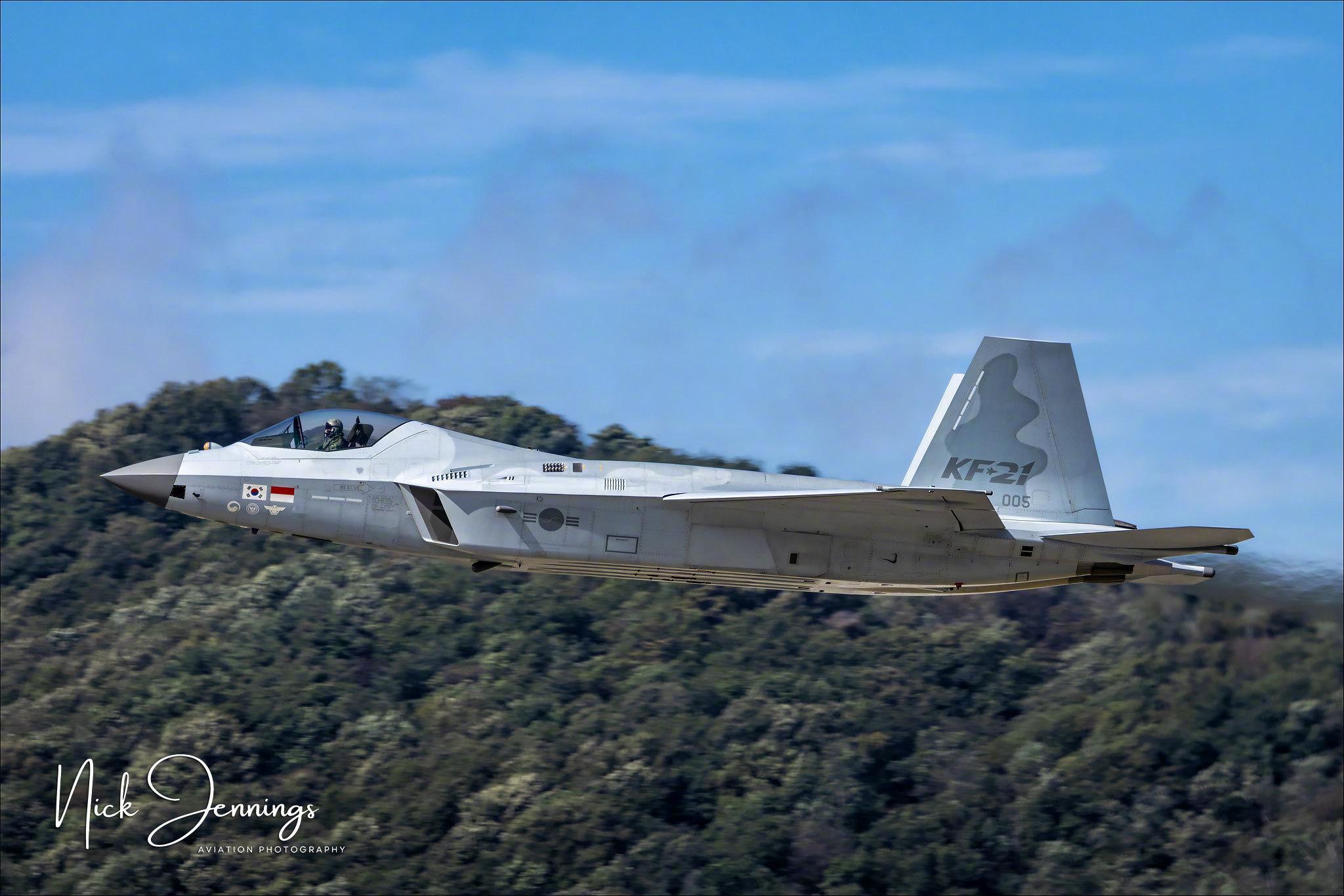“看起来隐形”的韩国KF-21“苍鹰”战斗机,在首尔航展上进行飞行展示,由荷兰航空摄影师Nick Jennings拍摄。