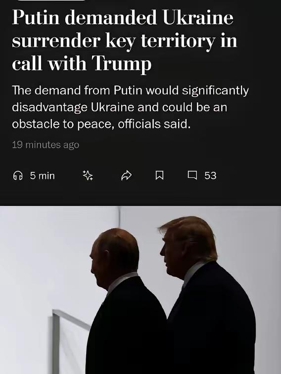 关于俄乌领土交换的最新版本 《华盛顿邮报》报道称,普京准备交出哈尔科夫、苏梅、第聂伯罗彼得罗夫斯克、赫尔松和扎波罗热这五个州的领土,以换取对整个顿涅茨克州的控制。消息来源是基于普京与特朗普的一次电话通话。 听起来,这似乎是一个相对“聪明”的交易,或者至少是普京为了缓解局势、避免战争进一步升级的策略。可是,我们真的能说,这种交换是好事吗?让我们来深究一下。 首先,必须要指出的是,这样的领土交换方案,在表面上似乎是为了实现双方的“利益平衡”。 普京交出五个重要的东部和南部州,换取对顿涅茨克的完全控制,意味着他可以控制该地区的资源和战略位置。 顿涅茨克,作为乌克兰东部的工业重镇,一直是俄方支持的分离主义力量的重要基地。对于俄罗斯来说,能够巩固该地区的控制,无疑是政治上一个重要的胜利。 但问题在于,这种“交易”真的会为和平带来长久的解决方案吗?从历史的角度来看,领土交换往往并不等同于真正的和平。 虽然看似通过这种方式,双方可以达成某种妥协,但实际上,这种交易只会加深两国间的裂痕。 乌克兰失去了五个重要的州,俄罗斯则进一步在东部地区拓展了自己的势力范围。而且,任何一方的“让步”往往都需要另一方的信任,然而在长期对立的情况下,信任的重建并非一朝一夕可以完成。 更为复杂的,是普京和特朗普之间的谈判。如果这一信息来源确凿,那么这一系列的外交交流也引发了不少质疑。特朗普作为前总统,其与普京之间的关系一直备受关注。 虽然特朗普在担任总统期间曾尝试改善美俄关系,但他与普京的接触一直被认为是非传统和充满争议的。 此时,这次通话会不会只是一个政治博弈的开始,背后隐藏着更深层的目的?俄罗斯是否只是暂时放下部分领土,以换取更大的战略优势? 同时,我们也要考虑到俄罗斯国内的反应。在普京提出这一方案后,俄罗斯民众和军方是否会接受这样的“割让”? 毕竟,哈尔科夫和赫尔松等地一直是俄方重点控制的区域,尤其是在战争初期的激烈攻势之后,失去这些地方会在民众中引发很大的不满。 在这种背景下,普京如果真的做出这样的决定,是否会激起更多的反对声音,甚至导致政权的不稳定? 同样,乌克兰方面也很难接受这样的“协议”。丧失五个州,无论从历史、文化还是经济的角度来看,对乌克兰都是巨大的损失。 尤其是在当前的战争局势下,乌克兰人民的民族情绪高涨,任何形式的领土交换都会被视为对国家尊严和主权的背叛。 即使国际社会为此提供某种“保障”,乌克兰人又如何能够信任这类协议能带来真正的和平? 其实,这个提议的核心在于,普京和特朗普所谈论的“交易”并不是简单的领土交接,而是背后复杂的地缘政治考量。 俄罗斯可能在战略上认为,控制顿涅茨克意味着掌控了乌克兰东部的核心地区,而放弃其他州则是为了避免长时间的军事消耗。 然而,这种“权衡”的背后,却隐藏着许多未知的风险,包括国际社会的反应、国内政治的变动,甚至可能导致战争的再次升温。 无论如何,这样的领土交换提议无疑会引发更多的争议和不确定性,在全球化日益加深的今天。 单一国家的领土控制往往牵一发而动全身,影响远远超出原本的战争范围。俄罗斯与乌克兰之间的恩怨,恐怕不会通过这种表面上的“妥协”而得到真正解决。 各位读者你们怎么看?欢迎在评论区讨论。乌俄关系 顿涅茨克局势