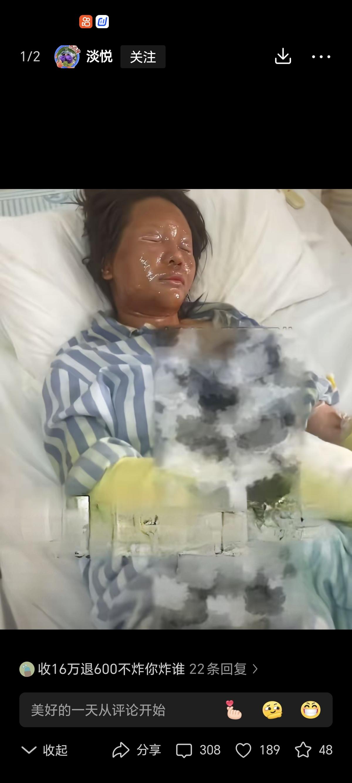 21世纪了,16万就想买断别人后半辈子的幸福。 美女主播在门口拿起被伪装成快递的包裹被炸后续来了。 原因是该男子为直播间观众,给女主播打赏了1000元,并称会给主播4万,结婚后再给12万,总计16万。女主播明确拒绝了,并退还了600元。男子就一直骂人还骚扰粉丝。 该男子称自己被拒绝后受到了很大的打击,想给主播一个教训,所以就把主播给炸了。心理多少有点问题了。 事发后,女主播因手部和面部炸伤紧急送医,虽无生命危险,但多处皮肤灼伤,短期内无法正常直播。警方迅速介入调查,从男子家中搜出剩余的爆炸物原料,据其供述,这些材料是通过网络分批次购买,提前半个月就开始谋划“教训”主播。他在笔录里反复强调“我花了钱就该得到回应”,全然不顾女主播明确拒绝的事实,甚至觉得16万“足够让她妥协”。这起事件在直播圈引发热议,不少主播晒出类似的骚扰经历,有人收到恶意快递,有人被私信威胁“不给联系方式就曝光隐私”。网友纷纷怒斥该男子的极端行为,既批判他将金钱等同于情感绑架的扭曲观念,也提醒主播群体加强安全防范,切勿因怕得罪粉丝而纵容不合理要求。目前,男子已因涉嫌故意伤害罪被刑事拘留,案件正在进一步审理中。