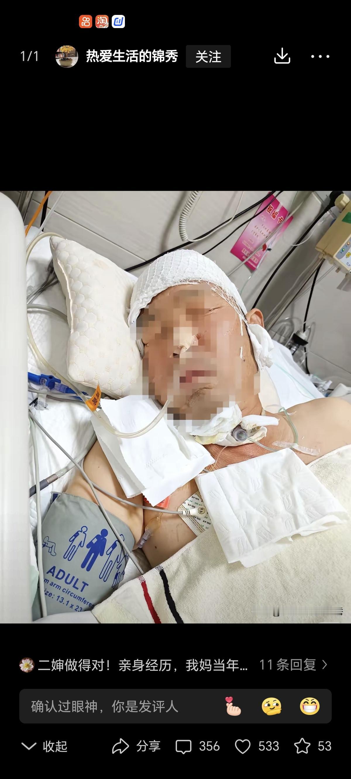 同门二叔得了脑淤血,在icu抢救了7天,二婶做主不治了,前天拉回了家,看样离走没几天了。 二叔今年58岁,两口子开了个五金店,前几天整理货时倒在了货架前,抢救了7天没有好转。 据医生说要是继续治疗,得花三四十万,八九成结果也是植物人。 二叔家有两个儿子,均已成家,工作也很普通,但他们的意见是得救老爸。 二婶在抢救室的门口蹲了一宿,第二天红着眼跟医生说,回家保守治疗。 亲戚们知道后,围着她说:你再考虑考虑,钱不够大家凑凑,还年轻,就这么没了怪可惜。 儿子们也说,能救还是救吧,钱借了慢慢还,要是不救,别人会说我们狠心,戳我们脊梁骨的。 二婶抹着泪摆手,声音沙哑:“凑的钱、借的债,最后还不是要你们俩还?他躺成植物人,我得天天守着,你们上班养家怎么分心?”她心里算得明白,三四十万对两个普通工薪家庭来说,是十年八年翻不了身的重担,更别提后续每月上万的护理费用。抢救7天里,她见过太多ICU门口的破碎家庭,明知希望渺茫,却被“尽孝”的名声绑着砸钱,最后人财两空。 亲戚们的劝说里藏着善意,却没人真正替她算过现实的账。两个儿子的坚持,一半是孝心,一半是怕担骂名,可他们没想过,真要拖成植物人,日复一日的照料、没完没了的开销,最终还是要压在二婶身上。 她不是不心疼,只是比起让丈夫在痛苦中苟延、让儿子们被债务拖垮,体面地送走他,守住这个家最后的安稳,才是更实在的选择。所谓的“狠心”,不过是成年人在绝境里,不得不扛起的清醒与担当。