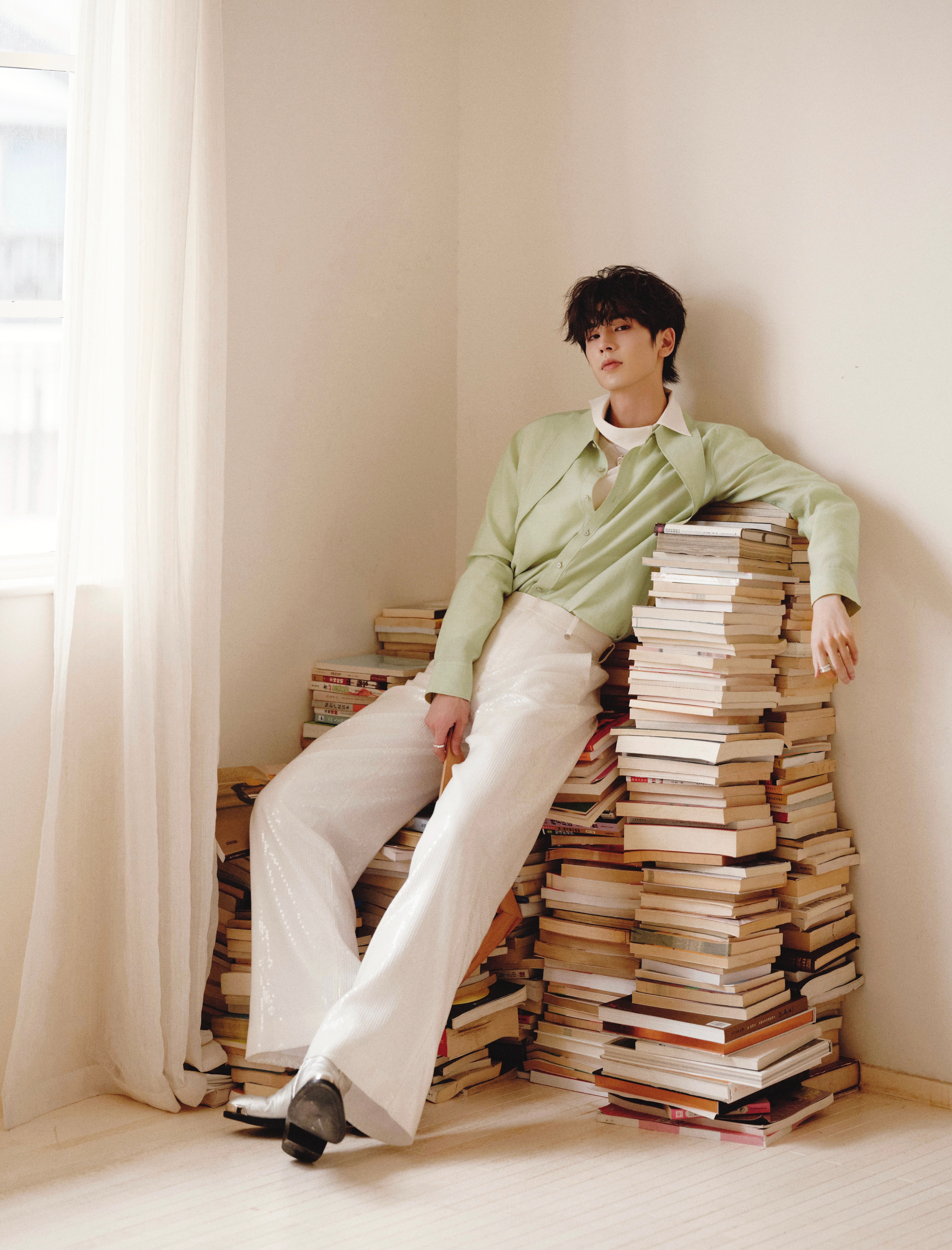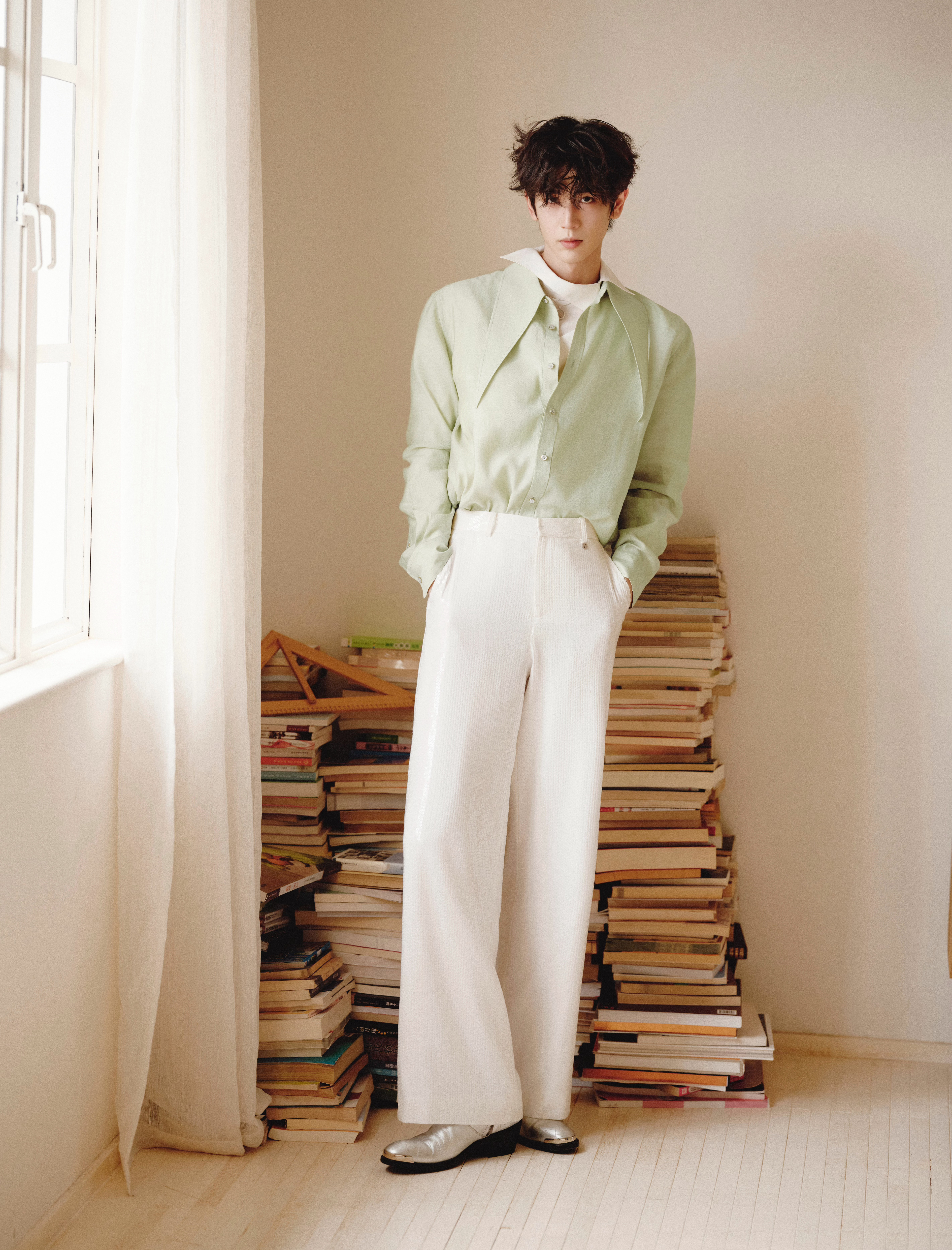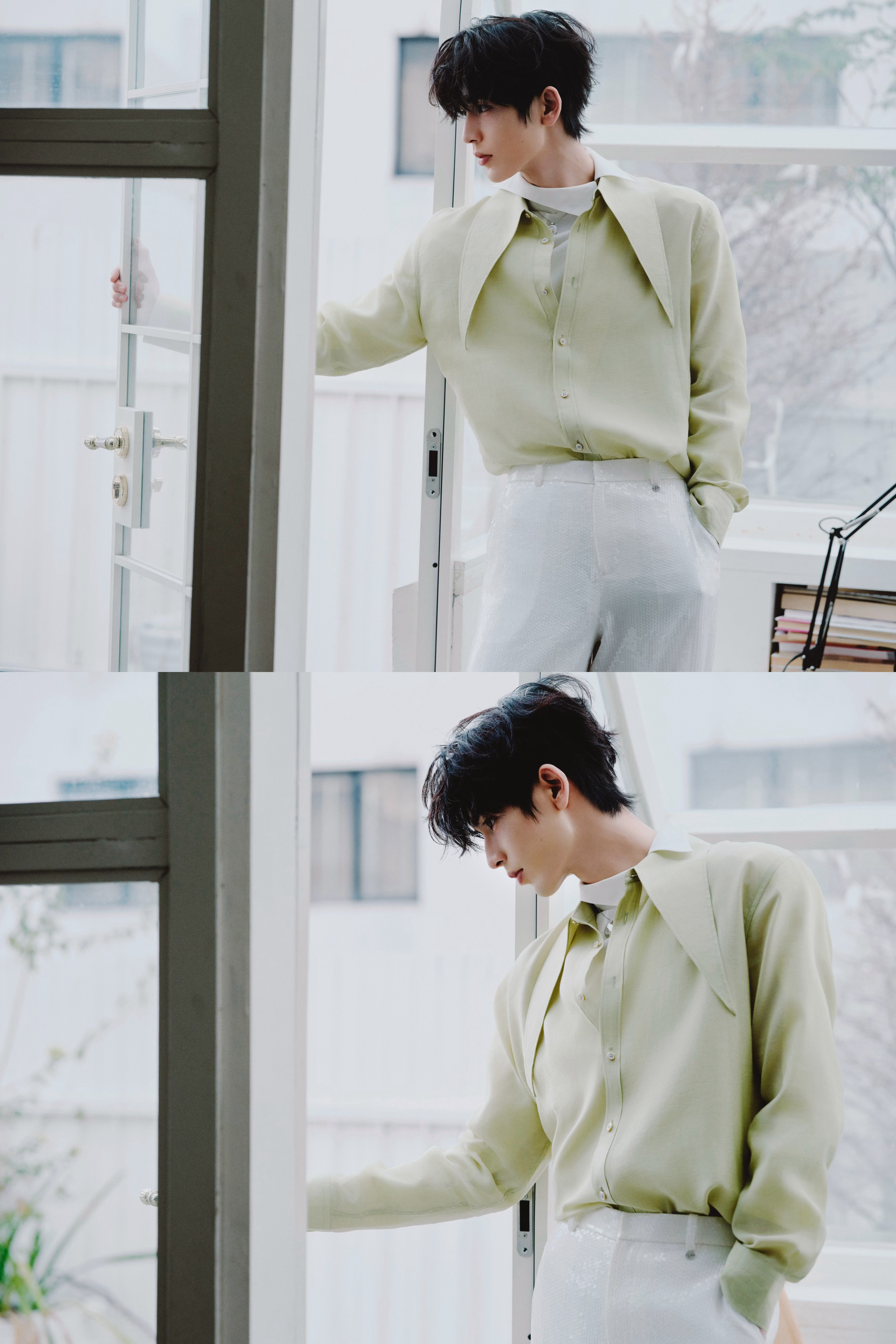 张凌赫今日出席代言品牌活动造型图集,身着夸张尖领衬衫搭配亮片长裤,佩戴Chopa