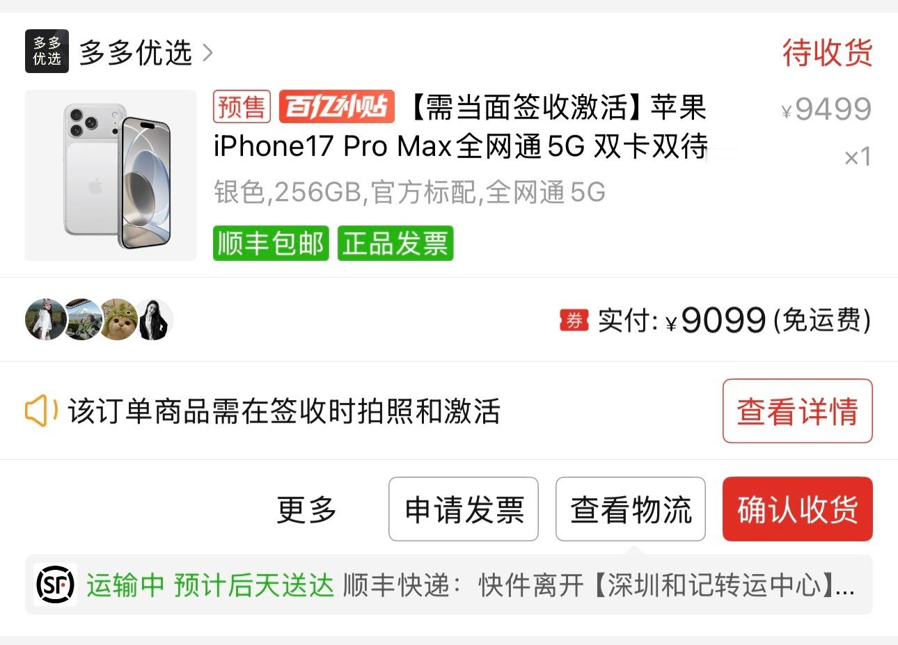 听说我在并夕夕百亿补贴9099买的iPhone 17 Pro Max发货了。[柯