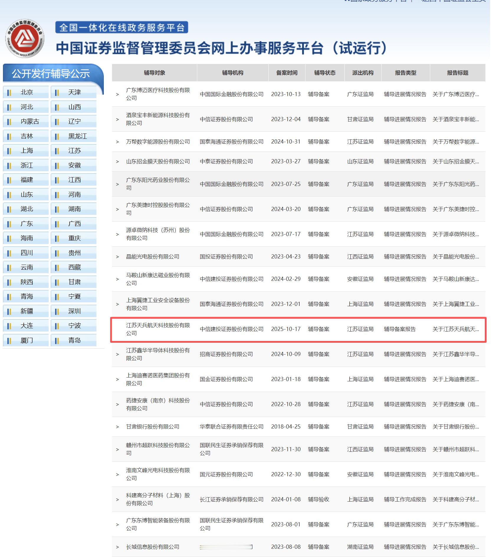 【天兵科技启动上市辅导,商业航天迈向规模商用】 10月20日消息,近日,证监会官网显示,头部企业天兵科技已报送上市辅导备案,标志国内商业航天市场化、规模化发展迈关键一步。