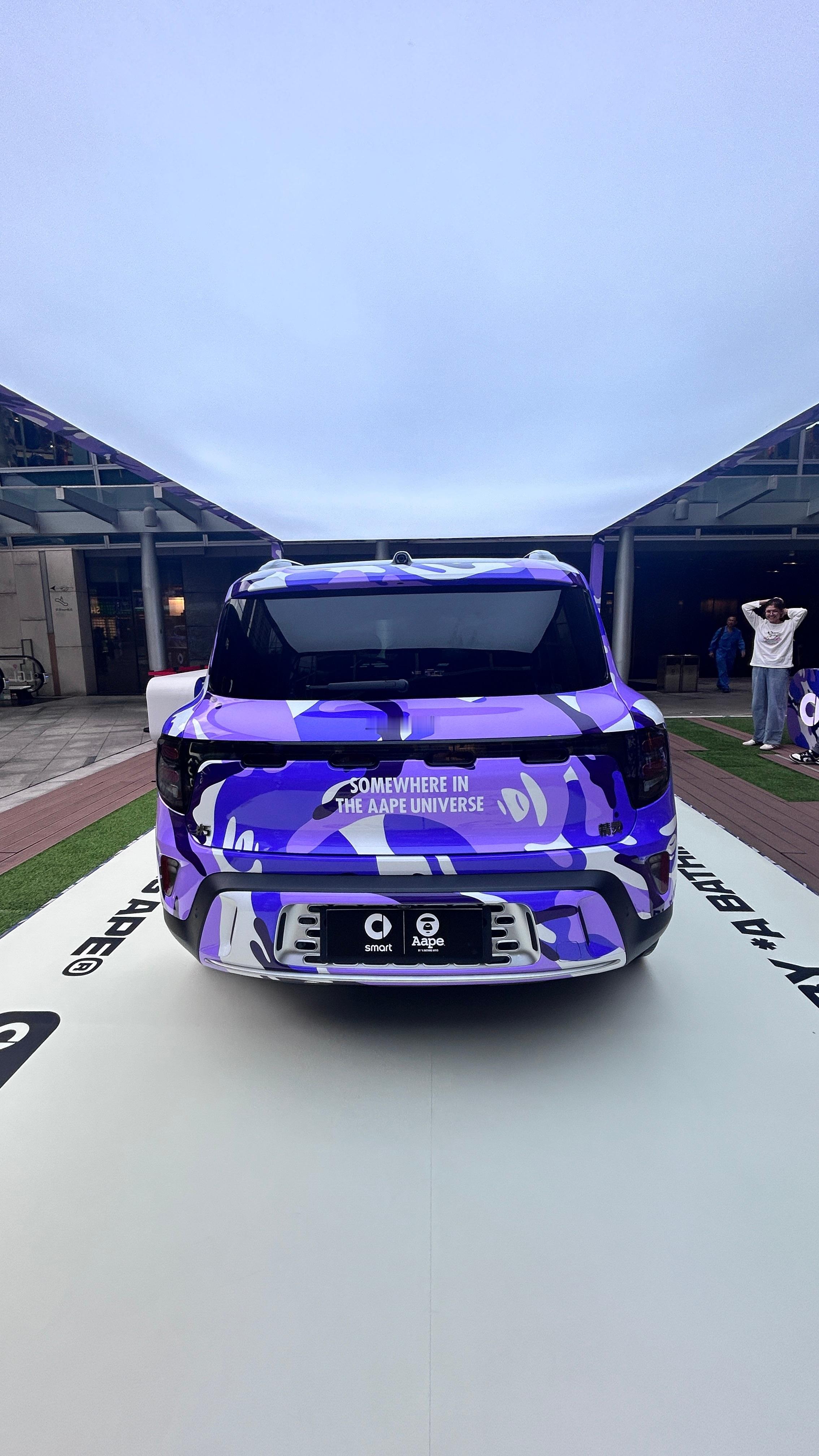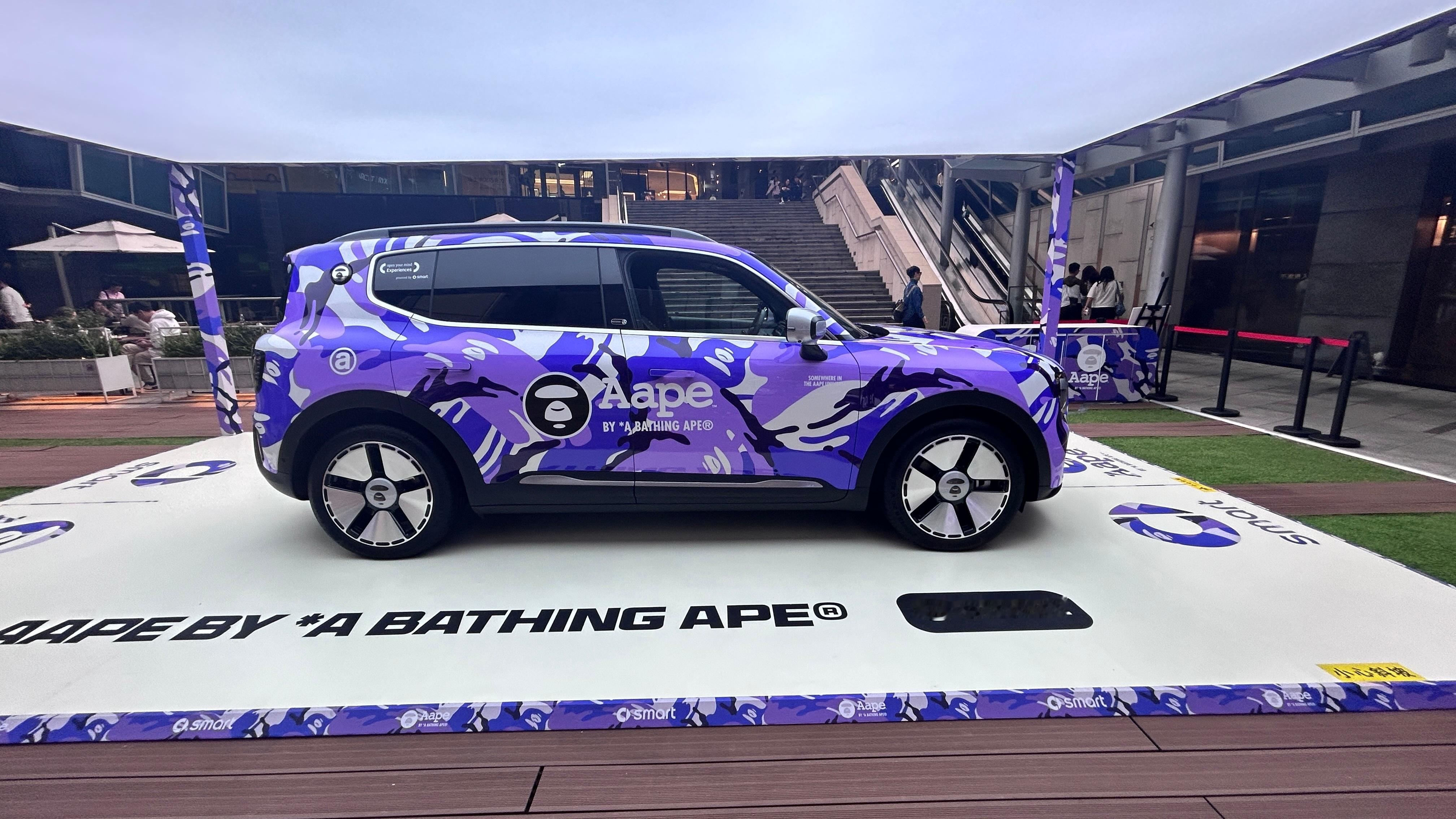 smart品牌自带高颜值设计与共创属性,而AAPE是针对年轻潮流市场的世界知名潮流品牌,两者以车为载体,在车身、轮毂等细节上,注入两者品牌标识、标语等经典符号,重塑smart 的外观,让它变得潮酷迷人,充满创意。除了近距离看车,还可以解锁一下官方潮玩周边,包括限定短TEE等。活动很有趣,最好去现场感受哦。