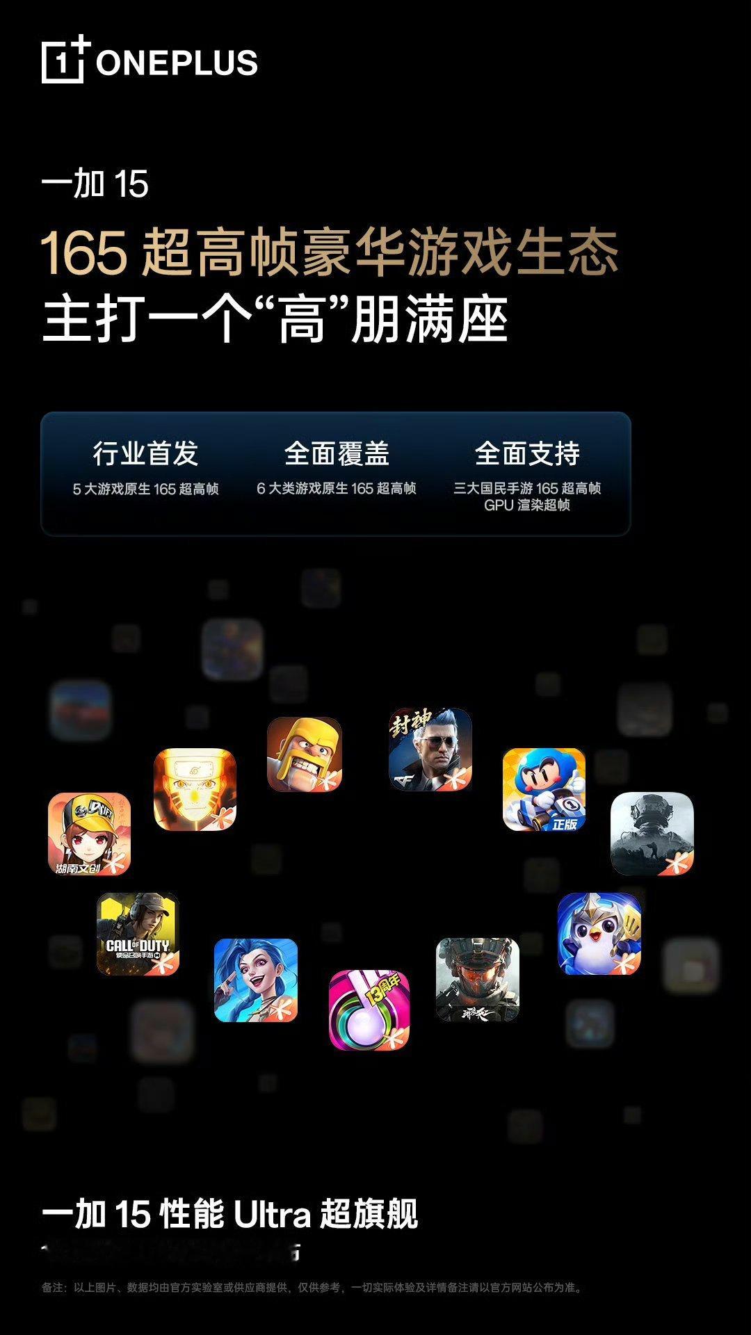 一加官方宣布将于10月27日晚上7点发布一加15和一加Ace 6。10月20日,一加中国区总裁李杰称,搭载第五代骁龙8至尊版移动平台的一加15跑分轻松超越430万,是唯一不用外挂插帧芯片就能实现原生165帧满帧游玩的手机,还是在搭载该移动平台的手机中充电续航组合最豪华的。