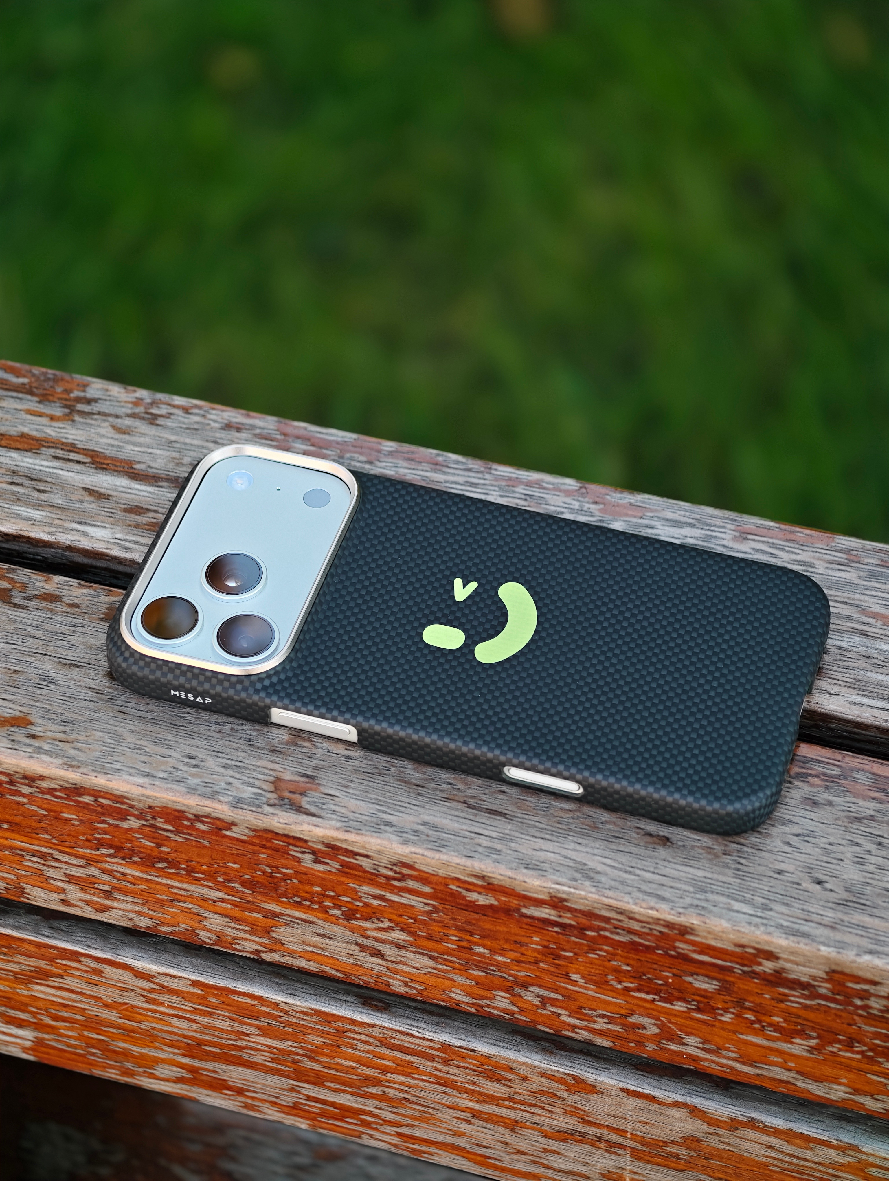 黑色的凯夫拉就挺沉闷的,但搭配上背部眨眼表情感觉立马不一样了,真是点睛之笔啊。心情不好时把手机翻过来,提醒自己注意情绪管理~[挤眼]