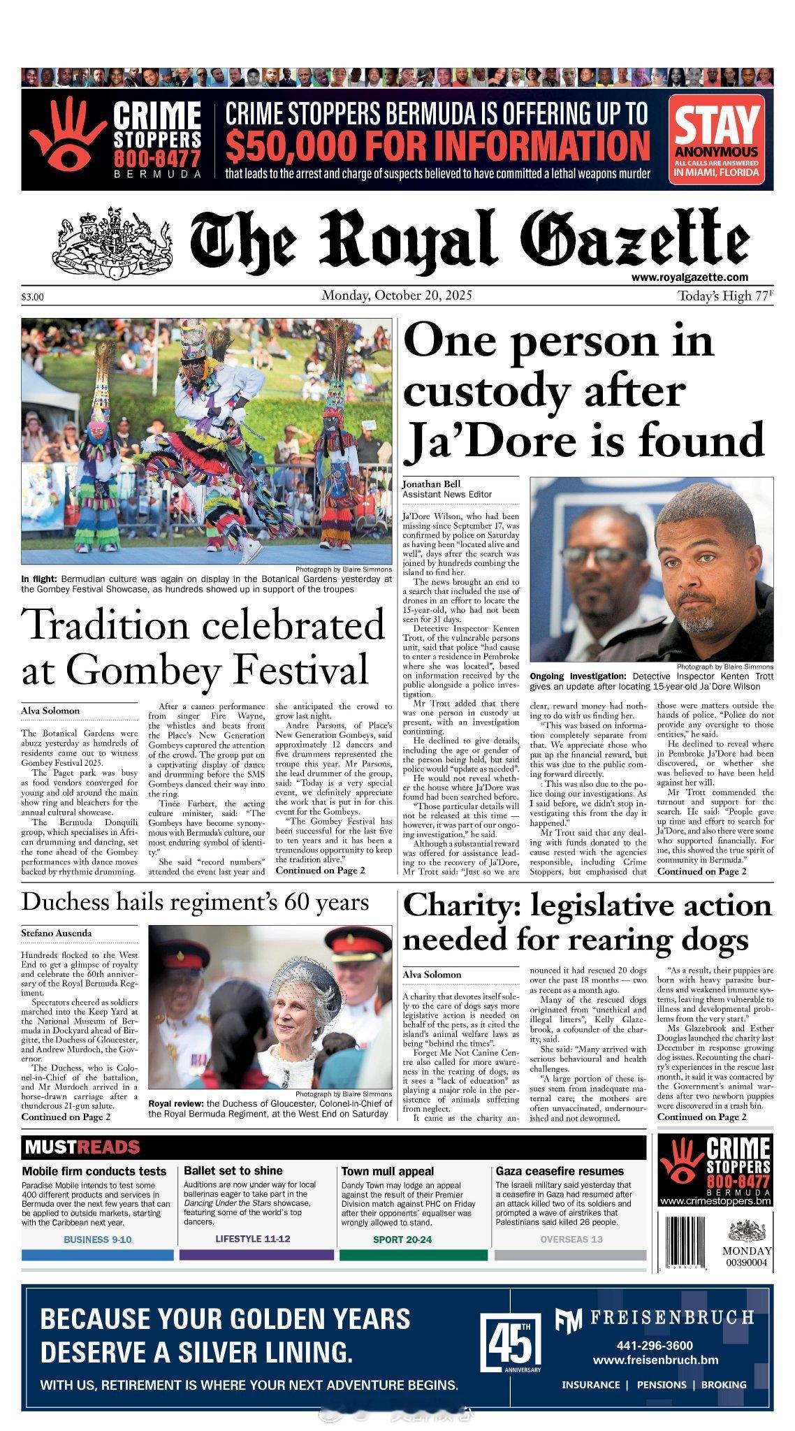 格洛斯特公爵夫人比尔吉特对皇家百慕大团的访问已被刊登在百慕大当地报纸头条上📰