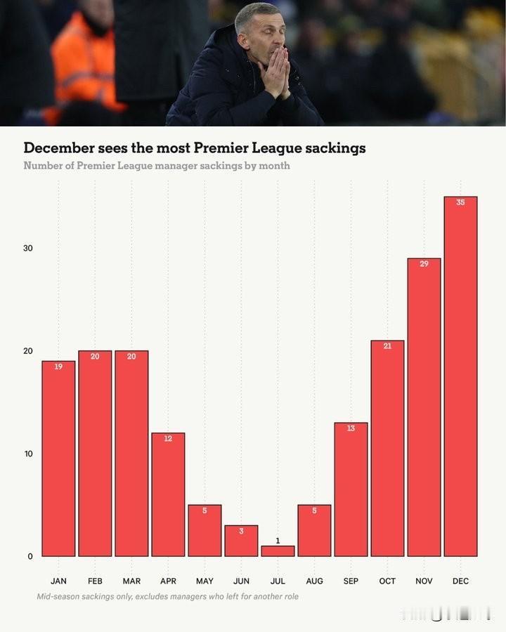 "新帅红利"现象是否真实存在? 深度解析哪些主帅是塞翁失马,哪些实属不幸,以及更多数据洞察。 ▪️ 2025-26赛季已有三位英超主帅下课;1992年以来共出现183次赛季中途换帅 ▪️ 12月历来最残酷(共35位主帅在此月被解雇) ▪️ 仅18位教练与波斯特科格鲁、波特同样在周六下课 ▪️ 周一是最热门的解雇日