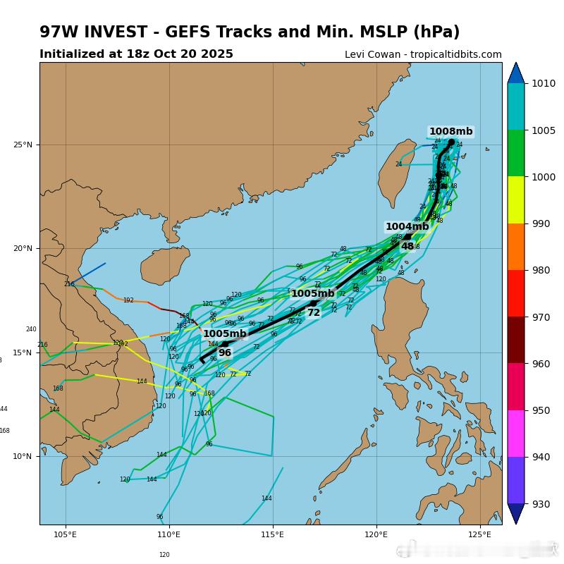 未来台风风神继续在冷空气压制下,向西南折,强度会逐渐减弱。而扰动97W在冷空气压制下,也向西南方向移动,发展为台风的概率不大。在台风、扰动、冷空气的共同影响下,今天浙江沿海、福建沿海、台湾、广东沿海、海南一带,以及东海到南海北部海区,要警惕强风雨的影响。