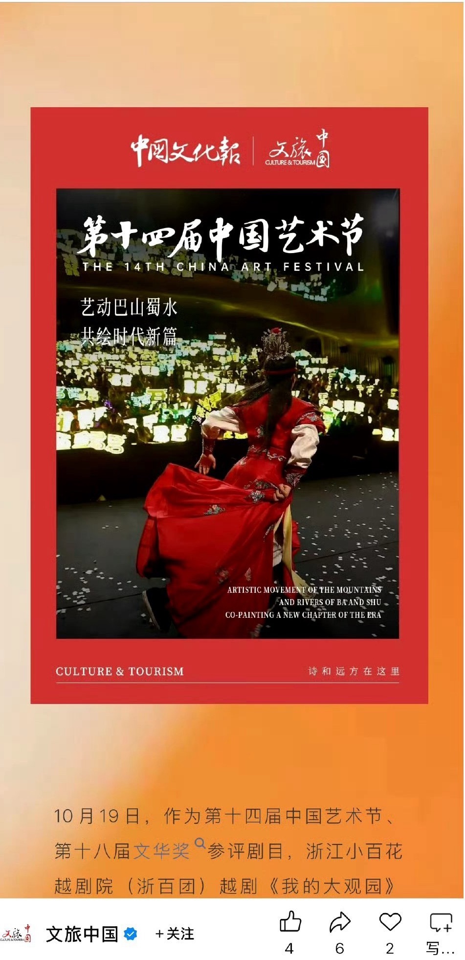 陈丽君主演的越剧《我的大观园》于2025年10月亮相第十四届中国艺术节,在四川剧院文华奖竞演后,其宝玉形象的舞台剧照被《文旅中国》选为“今日艺术封面”,配文“以新声对话旧梦”,让红楼情思有了时代新回响。