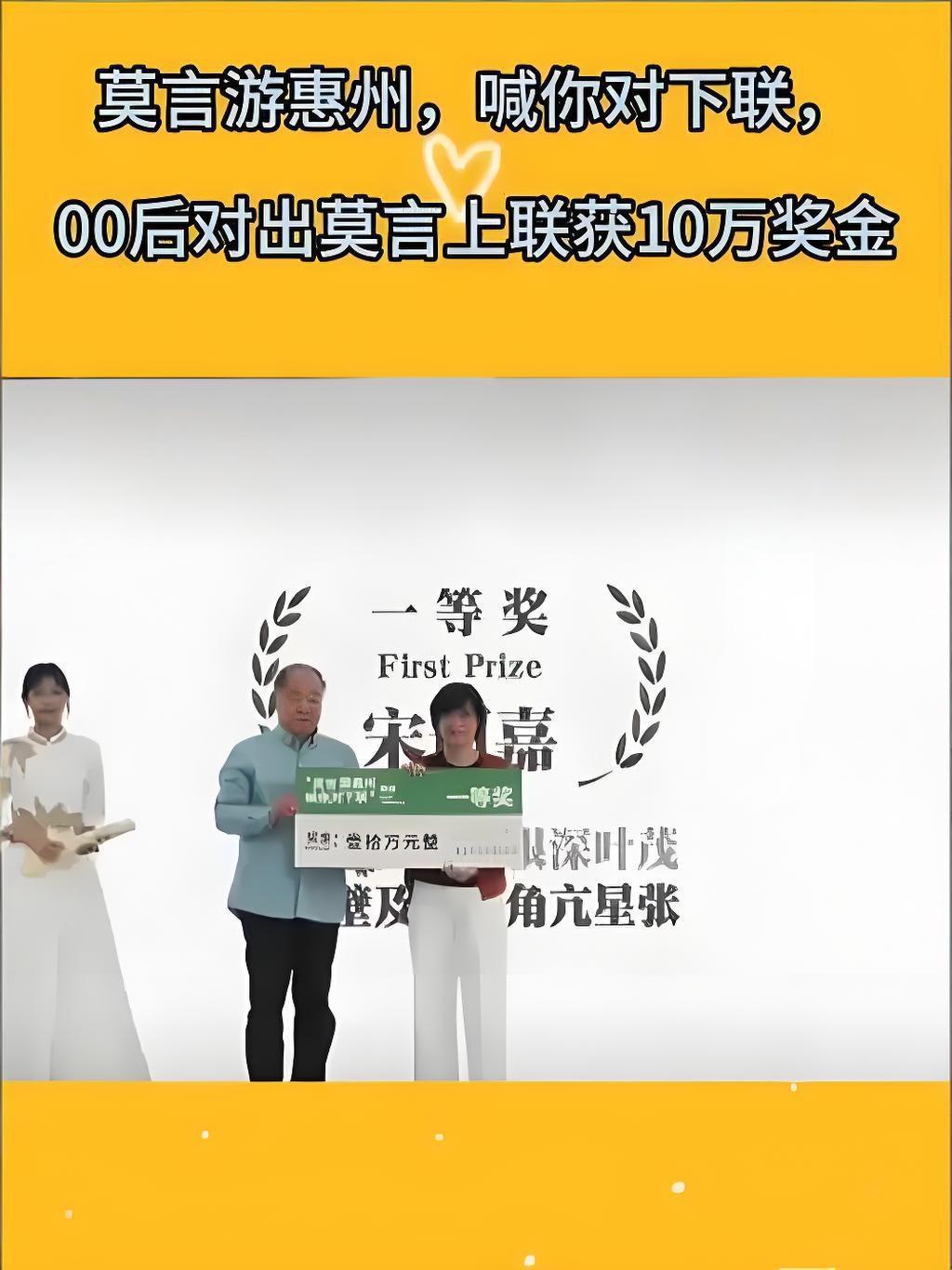 :00后10万奖金对联背后,藏着比文采更闪光的东西 诺贝尔作家莫言今年六月在广东写下“从南阳到南洋根深叶茂”的上联,公开征集下联。最近结果揭晓,21岁的广东小伙宋珂嘉用“自井壁及井毕角亢星张”拿下一等奖,独享10万元奖金。北师大教授连连称赞这是“多年难遇的绝对”。领奖时,宋妈妈还代儿子宣布,要把一半奖金捐给先心病儿童救助项目。 说真的,这事儿让人忍不住竖起大拇指! 首先,一个21岁的年轻人,能对出让专家拍案叫绝的下联,说明什么?传统文化根本不是“老古董”,年轻人玩起来照样惊艳。这比那些说年轻人只会刷手机的偏见,有说服力多了。 更打动人的是奖金的使用——二话不说捐出一半给先心病孩子。你看,有才的人不一定冷漠,有文化更可以有温度。这10万块钱,一半奖励了才华,一半点亮了良心,花得比什么都值。 莫言的联,少年的对,再加上这份公益心,串联起来就是一个完美的故事:文化在传承,善意在延续,这才是我们最愿意看到的“热搜”。 才华与善意并存,这样的“后浪”值得鼓掌。你觉得文化传承中,什么最打动人?评论区聊聊你的看法吧!