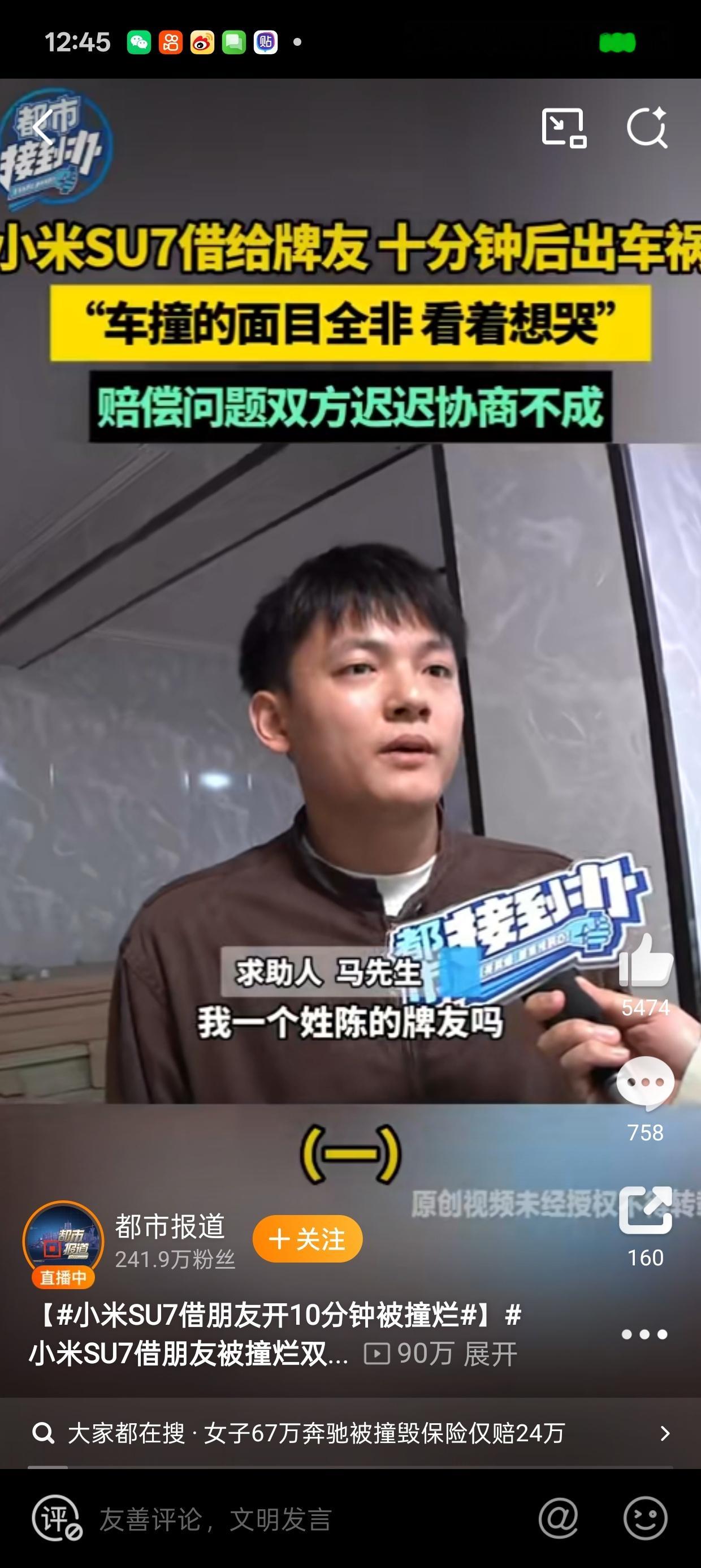 小米SU7借朋友开10分钟被撞烂牌友?借车出去炫耀?这样的朋友你也敢借车给他,心真大!不用猜,肯定不会给你修!