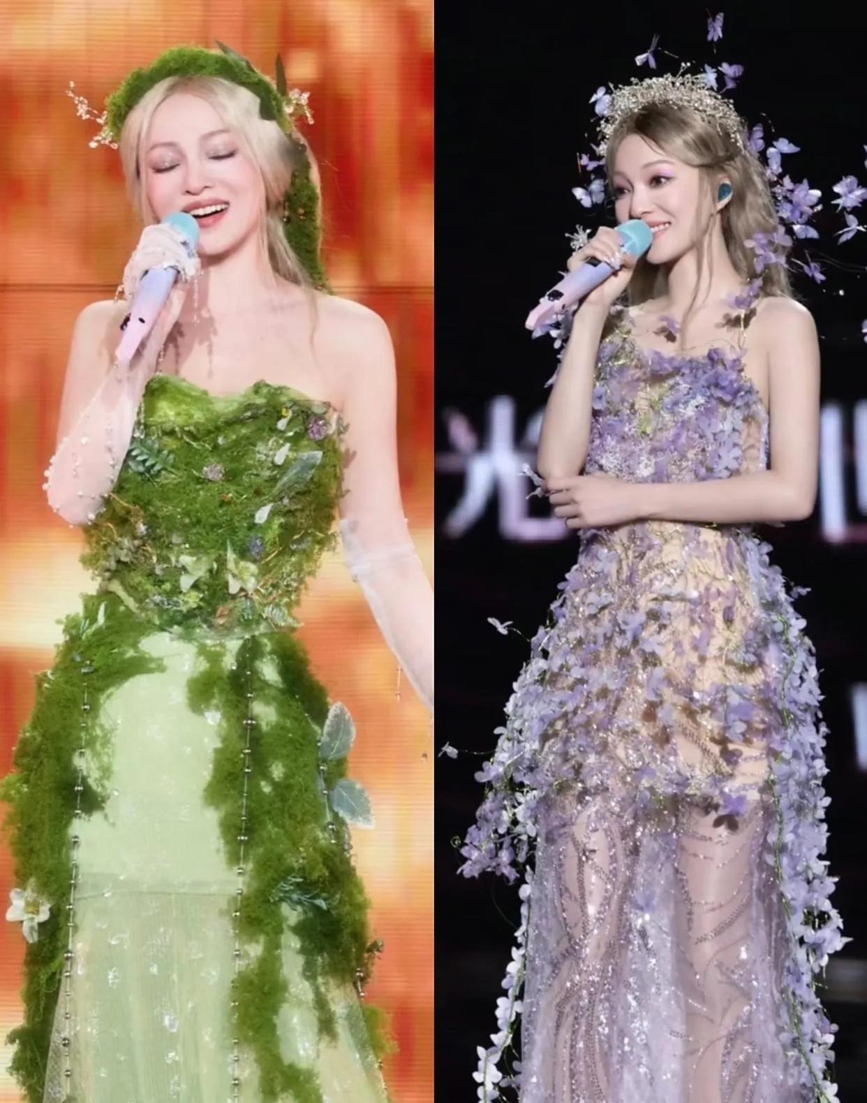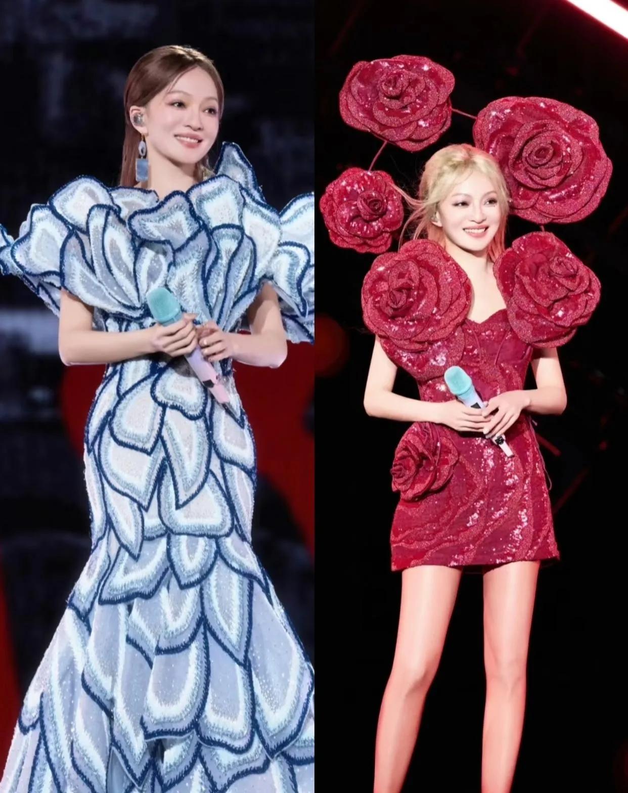 张韶涵演唱会的礼服也太绝了吧!粉色系华丽又霸气,蓝色款仙气飘飘,还有白色、黑色等